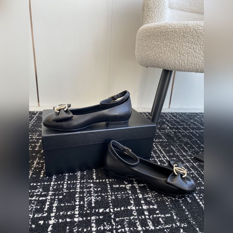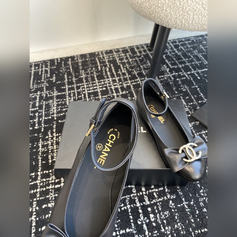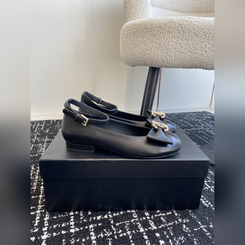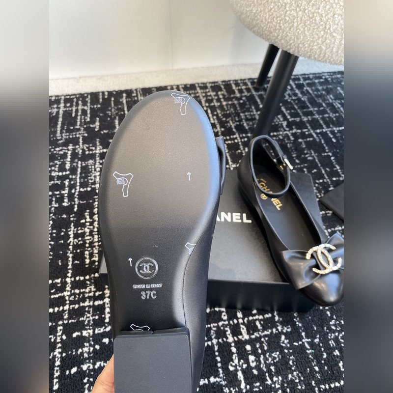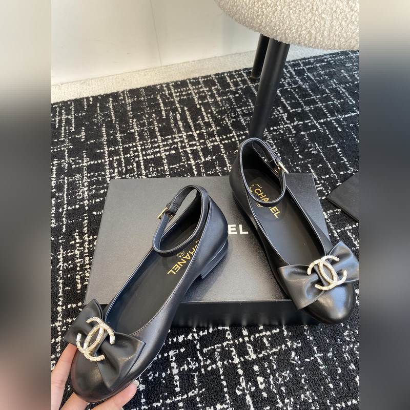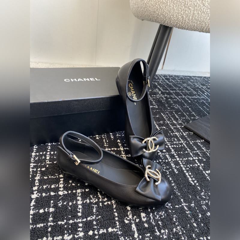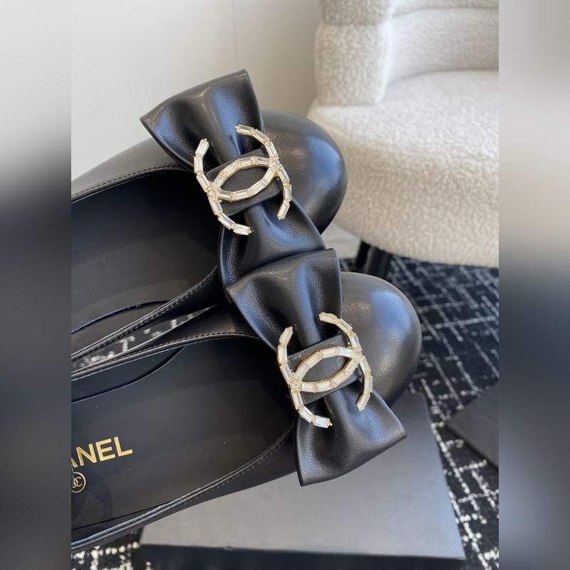 Chanel 24ss ballet shoes, original cut, Chanel big bow, double C imported diamonds, round toe ballet shoes