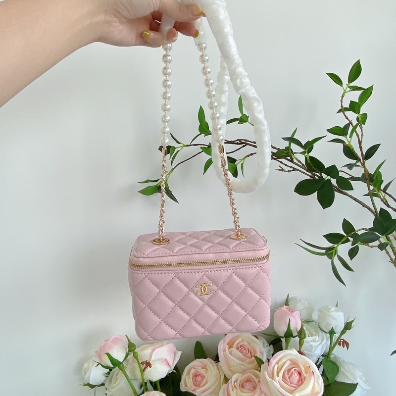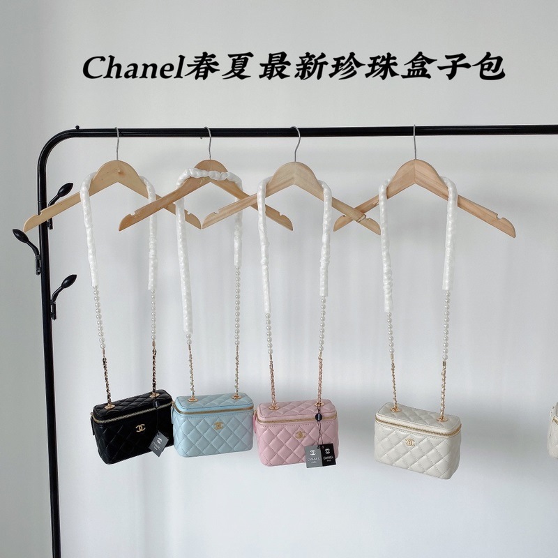 Chanel model 9056 mini box bag with pearl chain