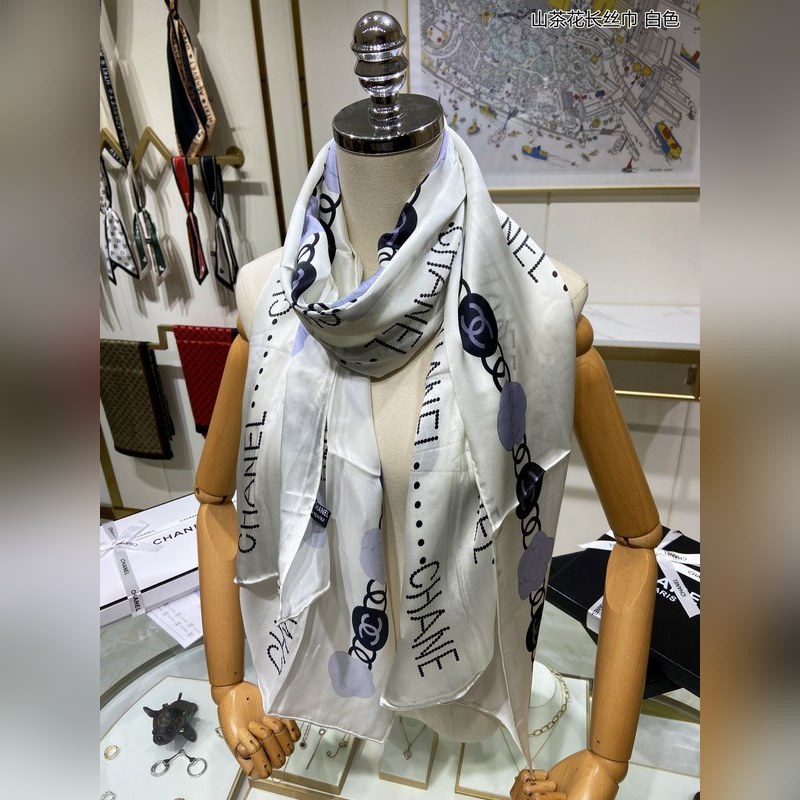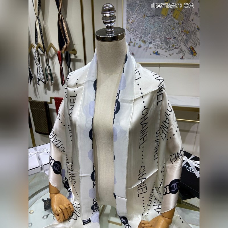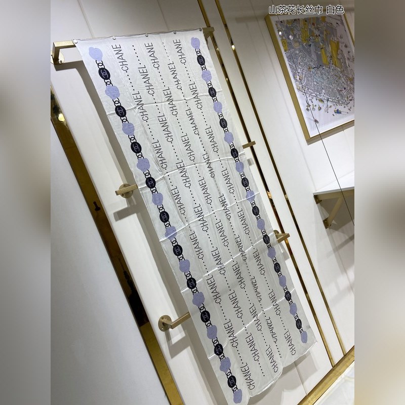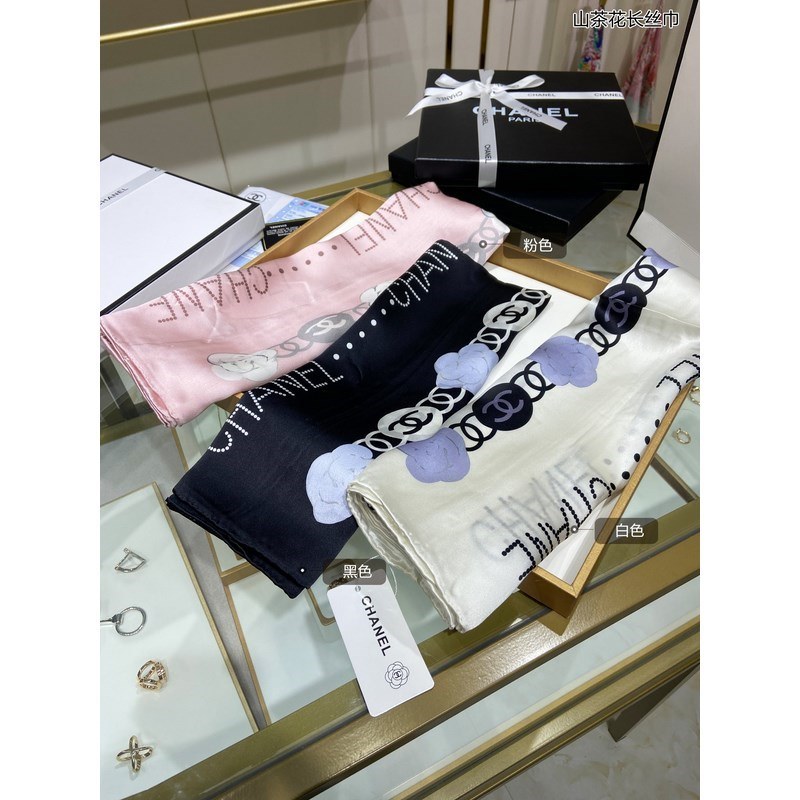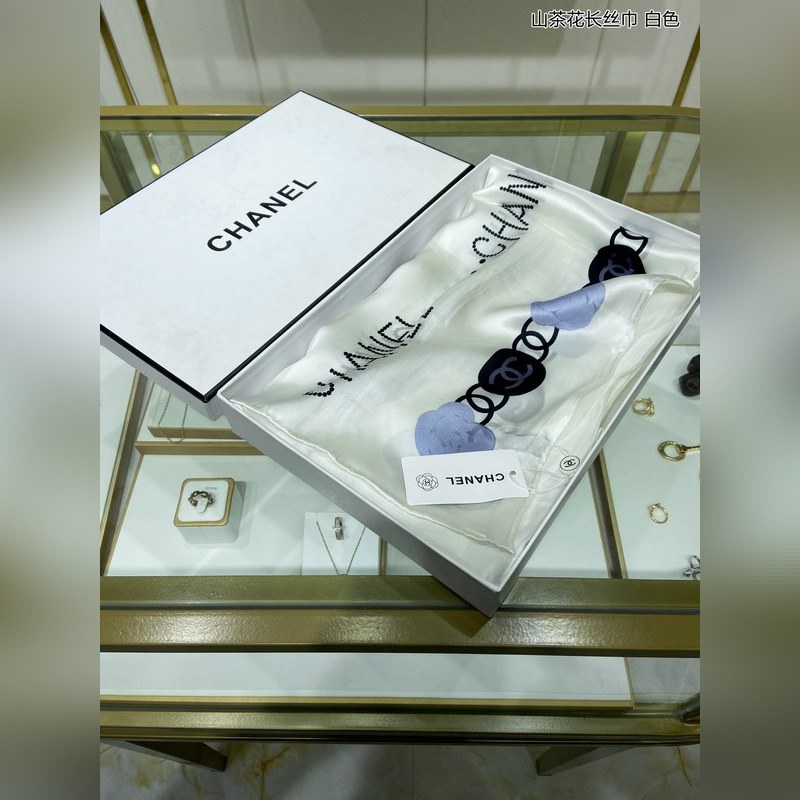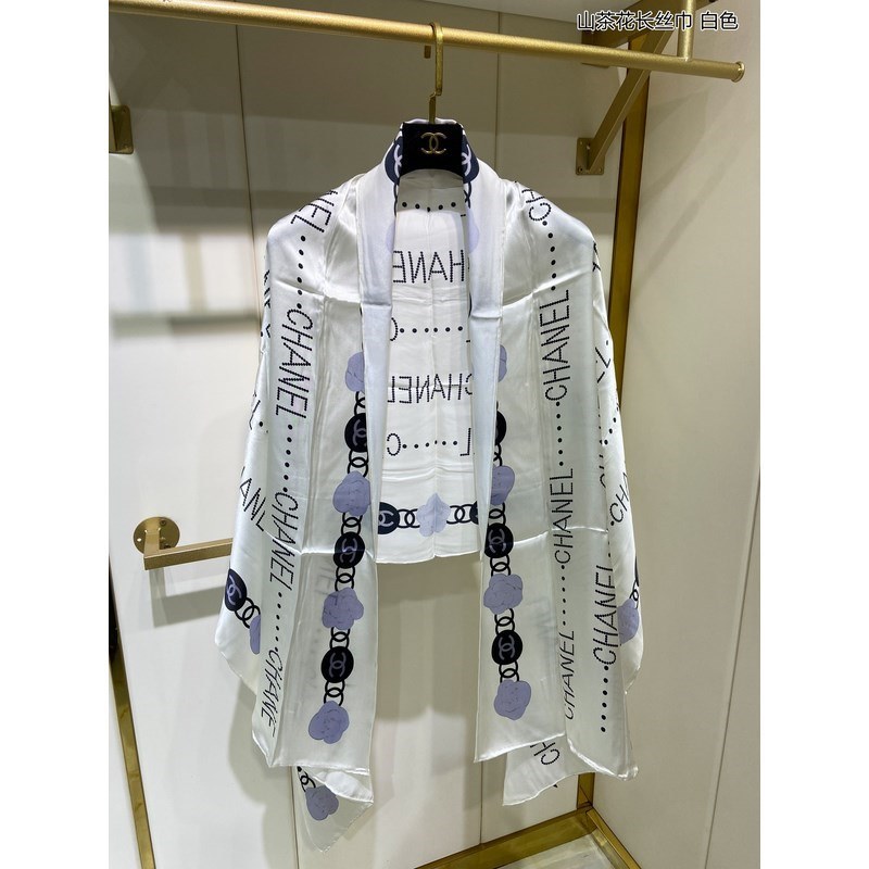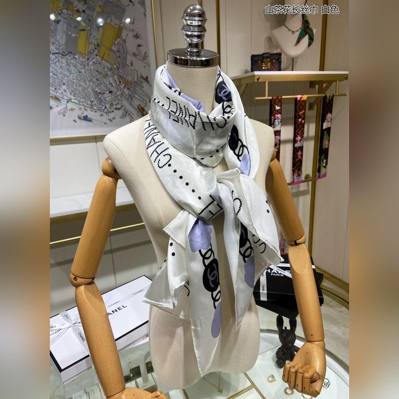CHANEL Camellia Long Scarf 100% Top-grade Mulberry Silk