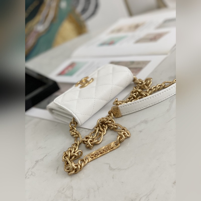 Chanel chain flap coin purse has both quality and value. It is very comfortable to wear and the whole bag is cool and sweet. Its shoulder strap has Chanel’s unique logo. It is super cool. The ball-grain leather is wear-resistant and durable. It can be carried cross-body or on one shoulder. It can’t fit a mobile phone. It has multiple built-in compartments, so it can hold small items. Size 12 9 2.5cm No. 81156 02843