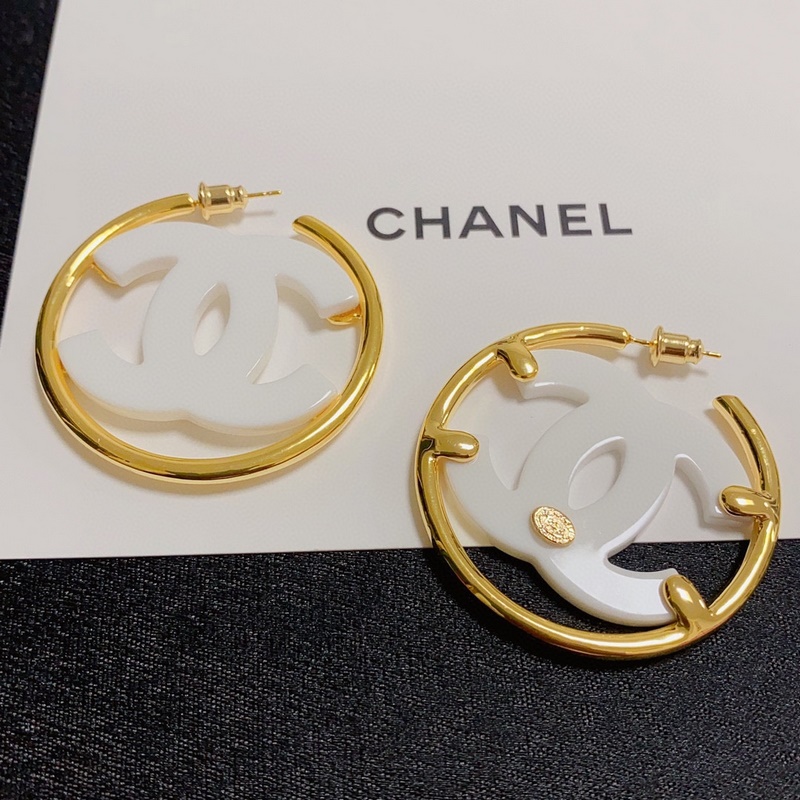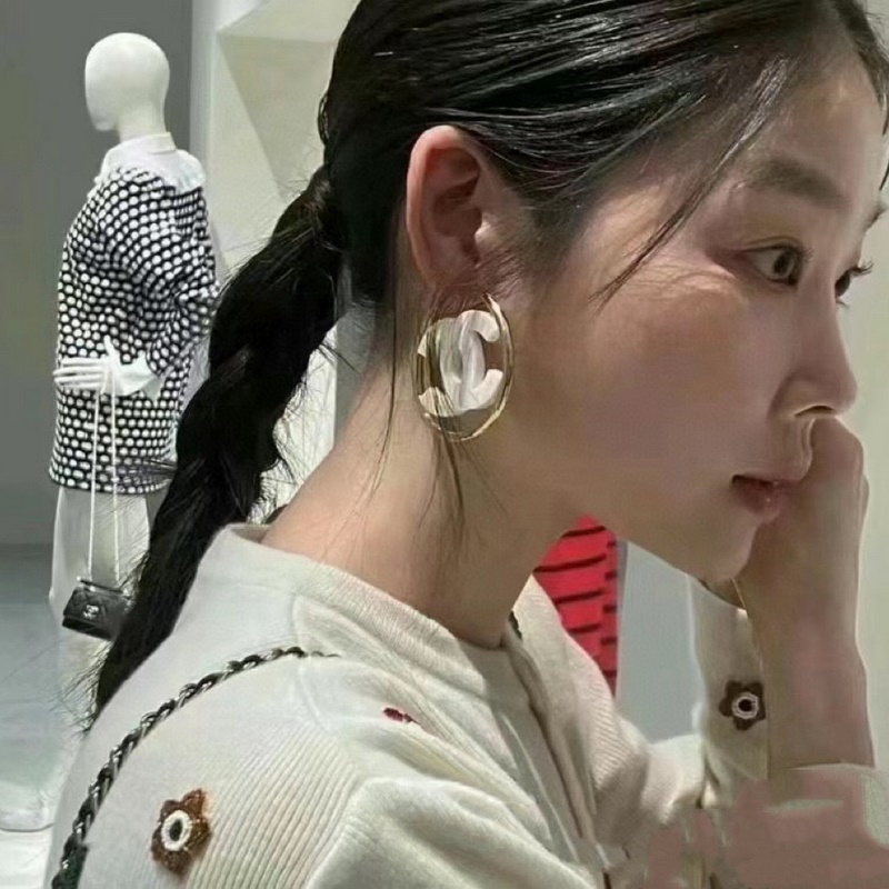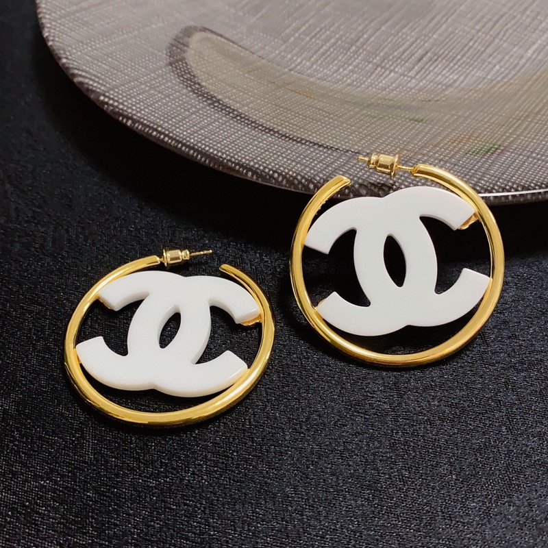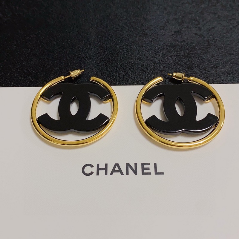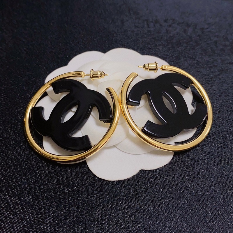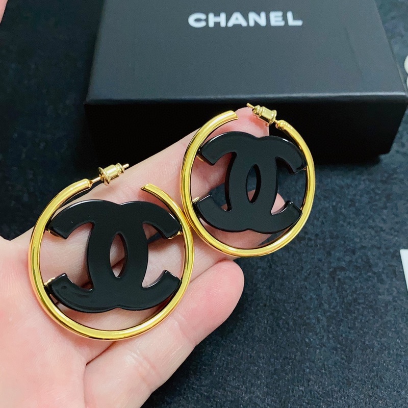 Chanel double C simple black and white acrylic large hoop earrings. This pair of earrings is really beautiful. The design looks simple, but the wearing effect is super good. Made of brass, it is very elegant on the ears.