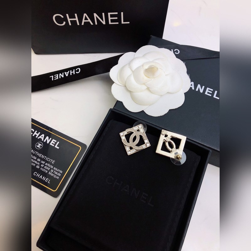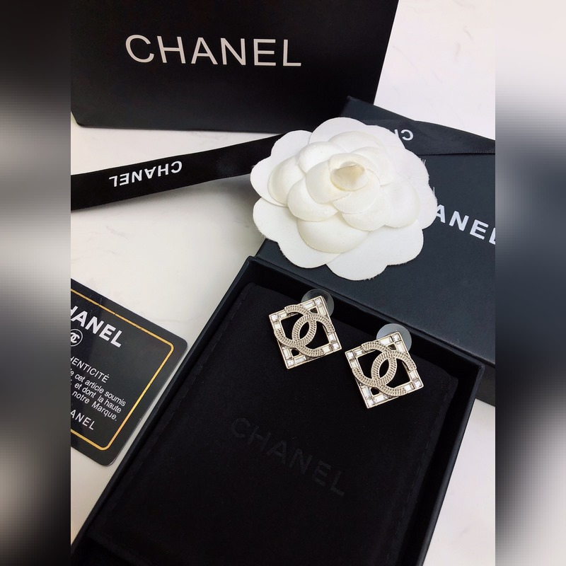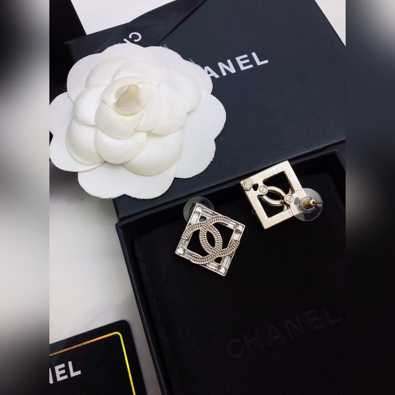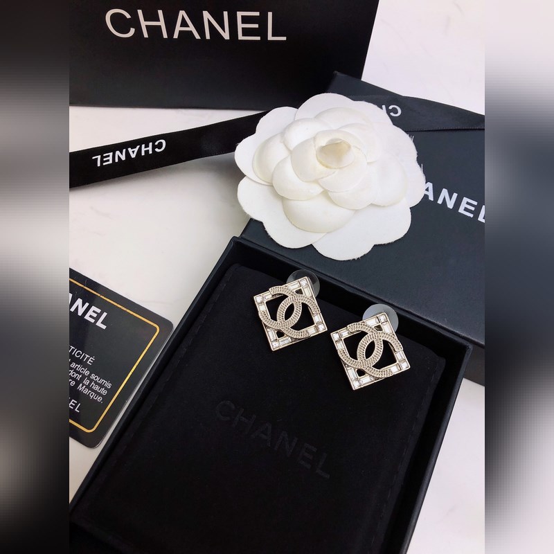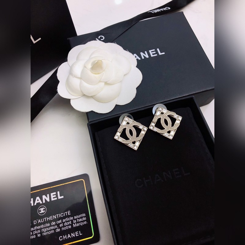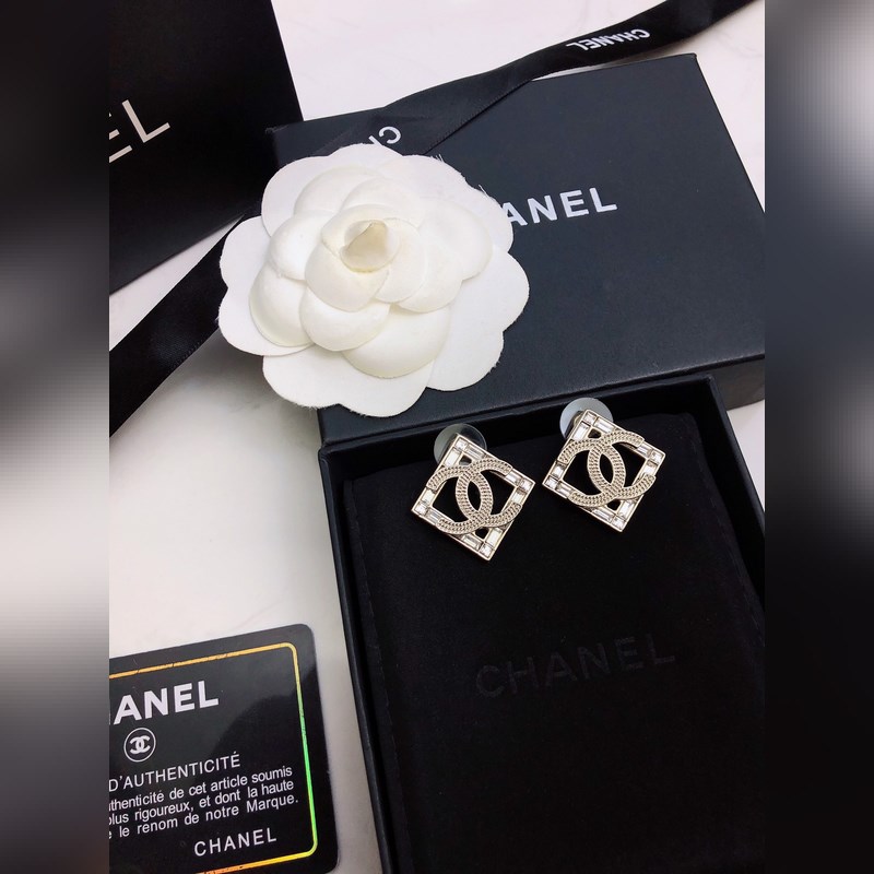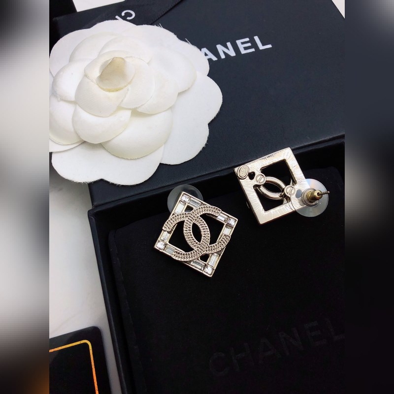 Chanel Chanel Chanel small square diamond big C earrings earrings hot-selling model, the highest version on the market, 1:1 style mold, 925 sterling silver needle, the original version of the counter, the same brass material, small Chanel classic logo Chanel earrings, goddess must-have, super face-slimming 04038080