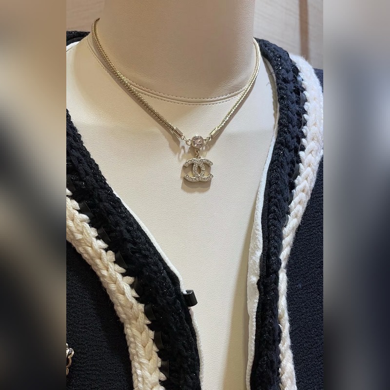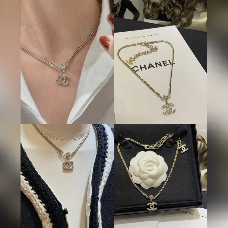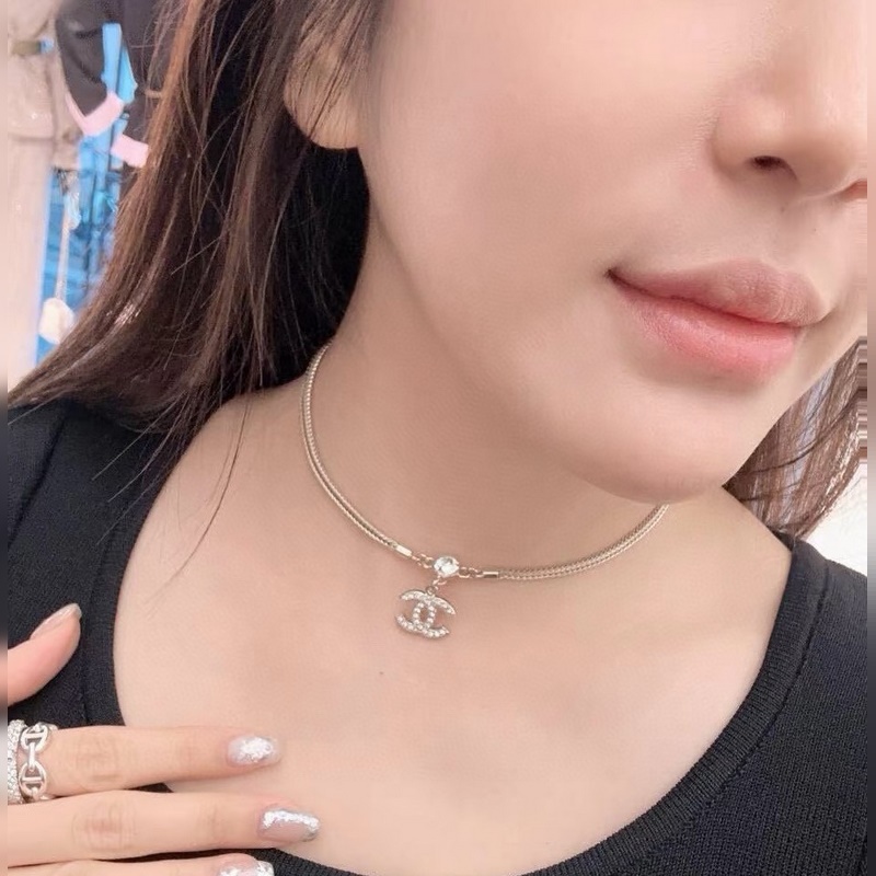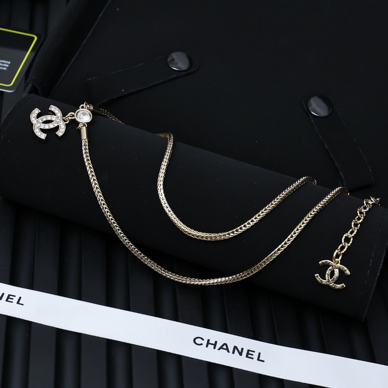 Chanel–Diamond double c, beautiful Chopard snake bone chain necklace