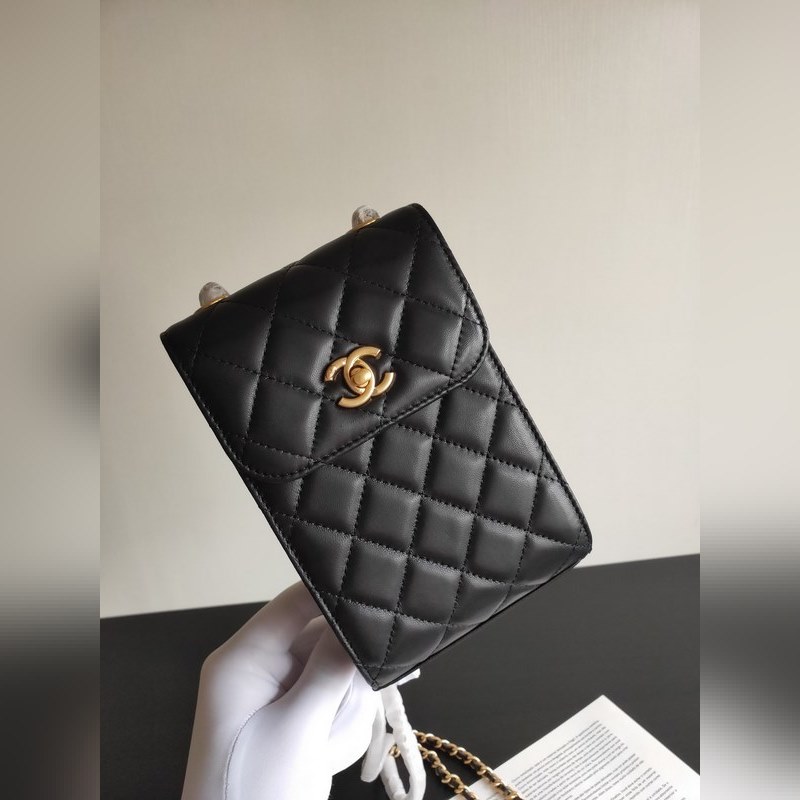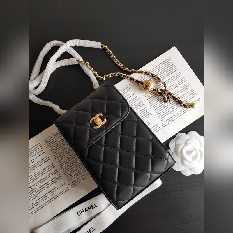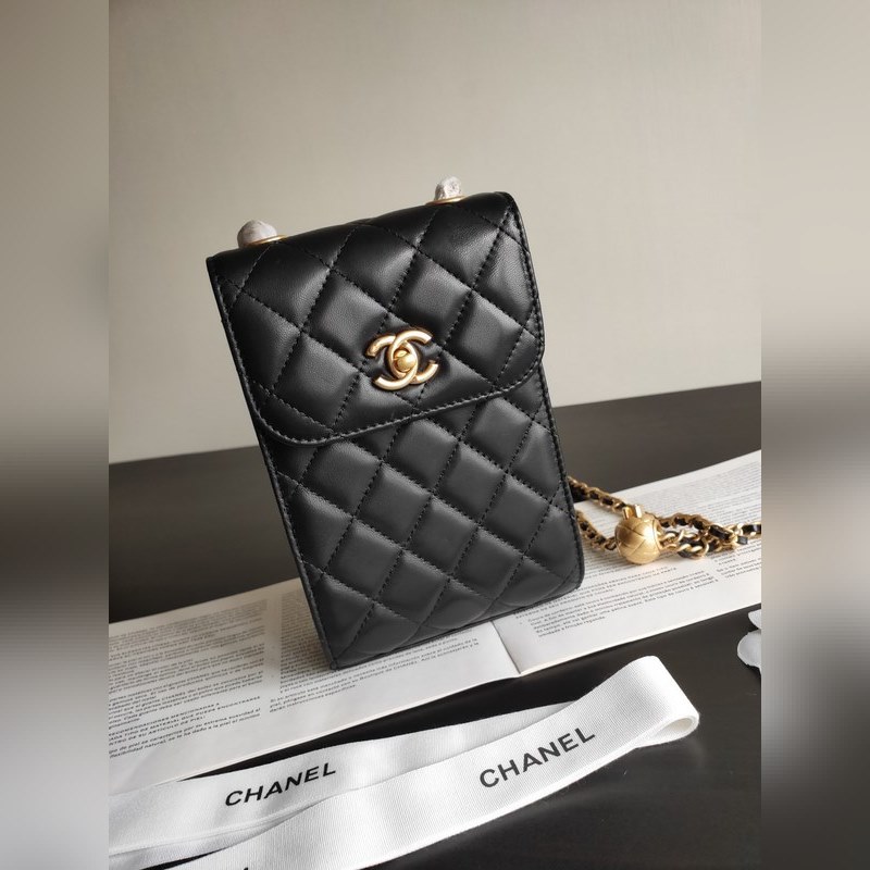 Chanel Double C Lambskin Gold Bead Chain Adjustable Mobile Phone Bag Chain Bag Size: 18*12*6cm