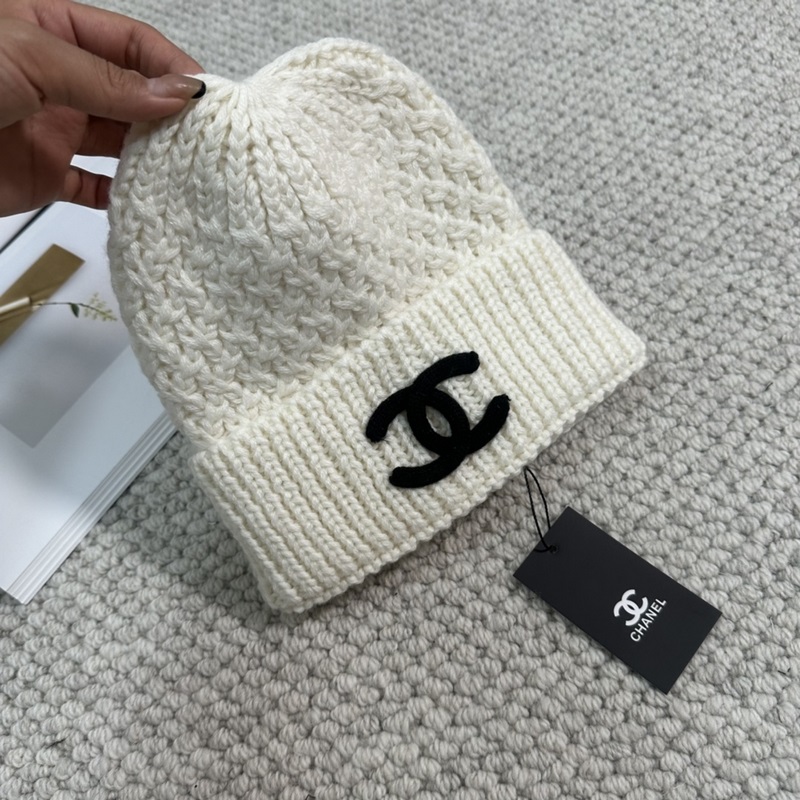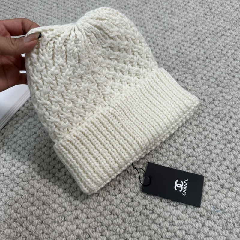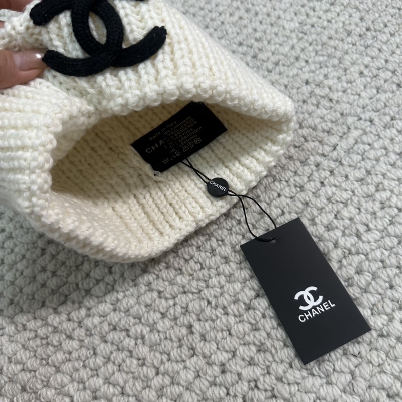 Chanel second-hand popular double C logo knitted beanie
