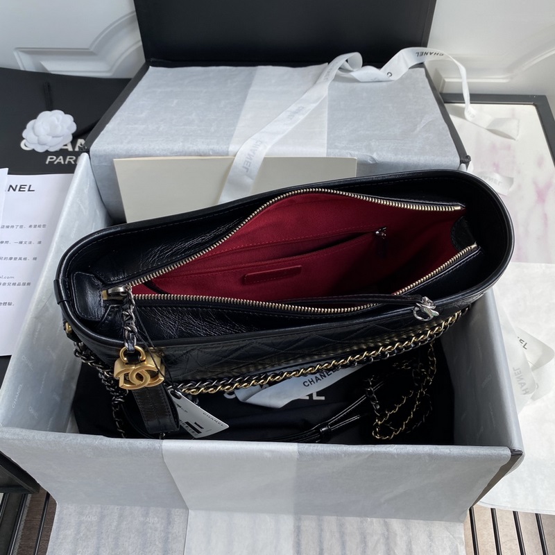 93824 Chanel Gabrielle Innovation never disappoints. The original beauty is combined with strength and elegance to create this Chanel Hobo Bag (Gabrielle). It debuted at the 2017 Spring/Summer Haute Couture Collection Show and was everywhere at the just-concluded Fashion Week. The delicate and soft body and the strong and wide bottom fully reflect Ms. Chanel’s pursuit of freedom and comfort. Size: 28cm
