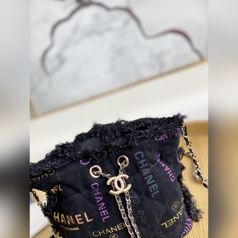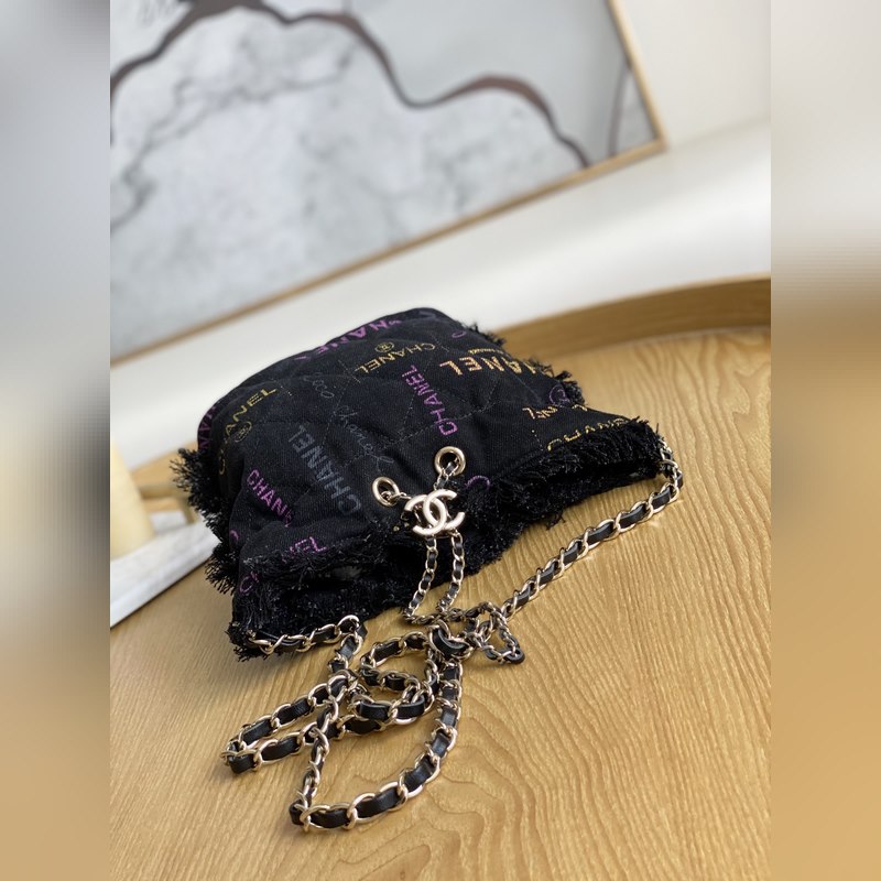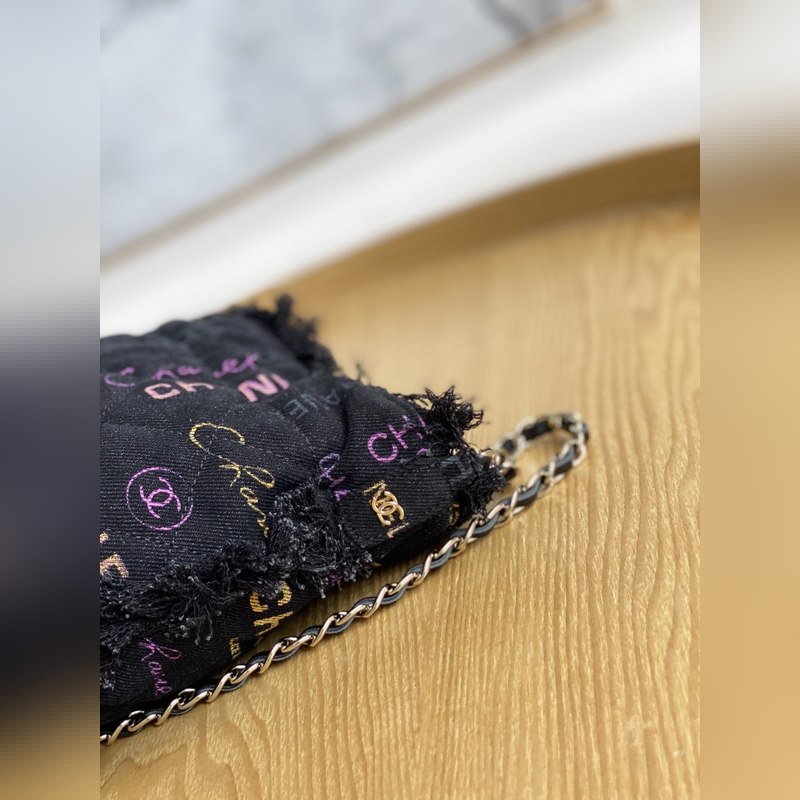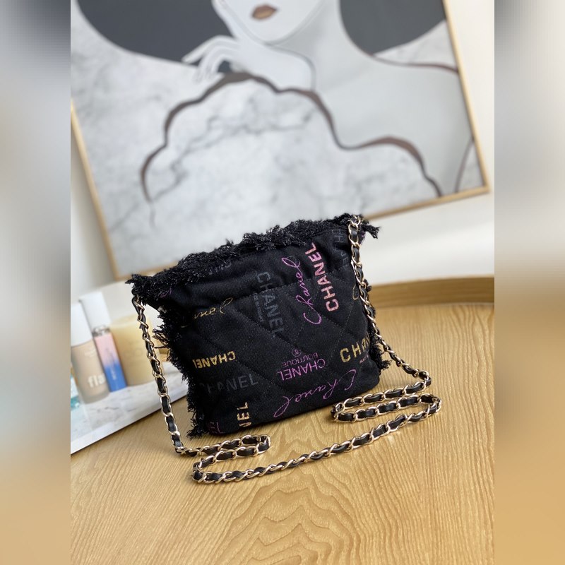Chanel graffiti denim bucket shopping bag in stock, luxurious and shining, 2603 graffiti letters permeate the soul, carbon gray denim is still fashionable, the quality is absolutely excellent, the feel is soft and delicate, this season’s denim bag is destined to be the focus of the audience, we will not avoid any details, display professional terms, detailed descriptions, too many back and forth, market exclusive large size: 11*15*10.049680