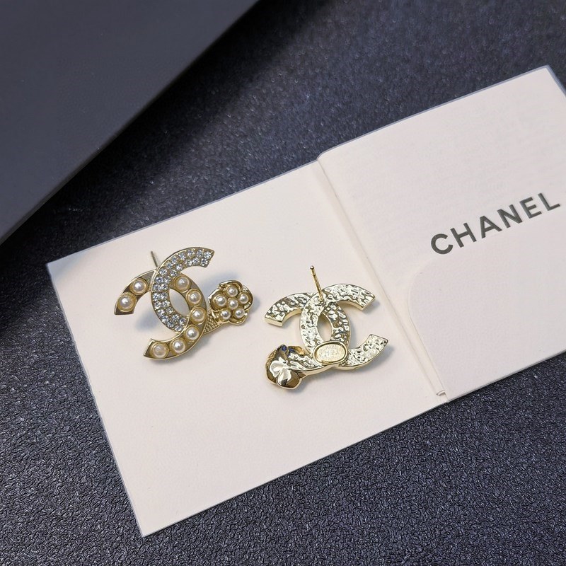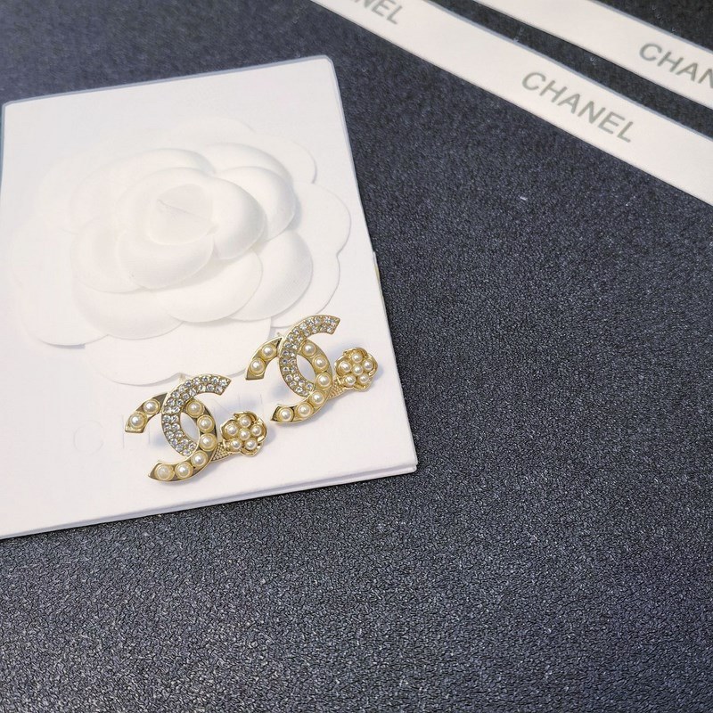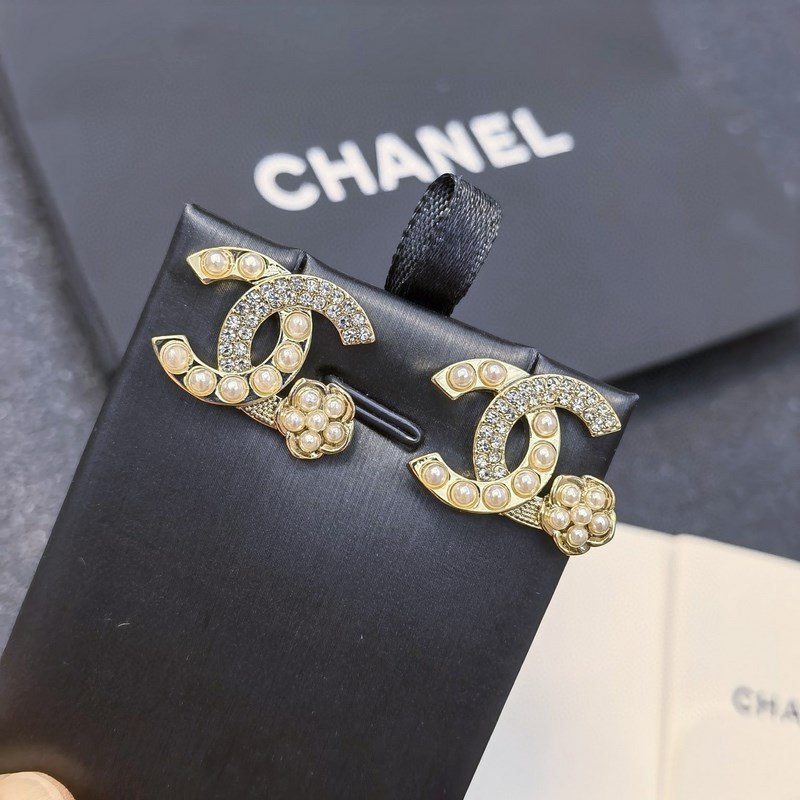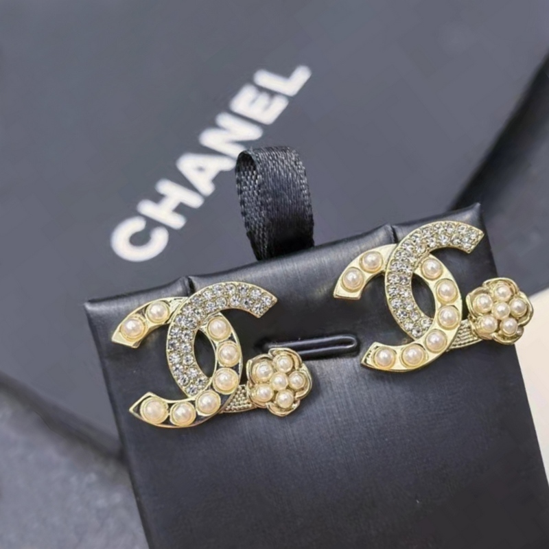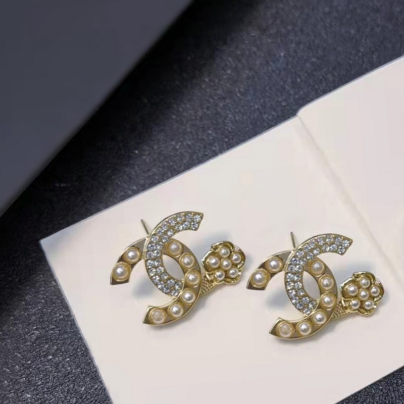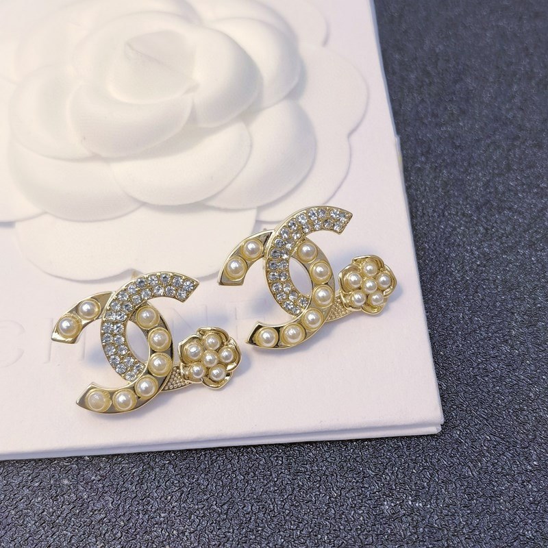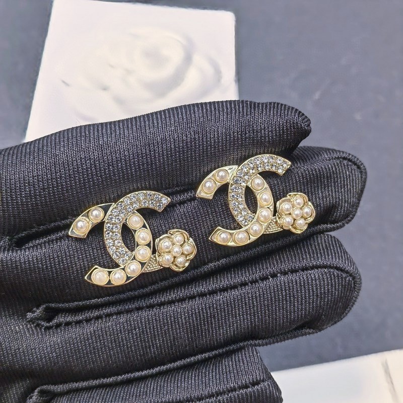 Chanel micro-inlaid letter pearl camellia earrings