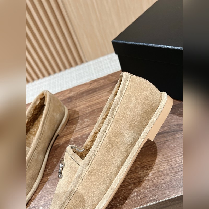 Chanel Maillard suede loafers are super cute. The fur and leather keep you warm. They come with double C logo buckles, giving you a retro preppy vibe. They are very soft and comfortable to wear. For autumn and winter, I suggest you order a larger pair of socks, as they will be more comfortable and will not restrict your feet. Size: 35-39 (40/41 is custom-made and cannot be returned or exchanged)