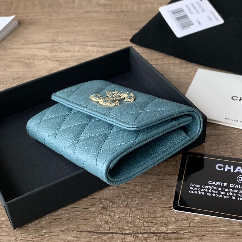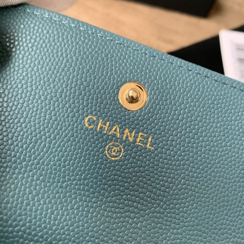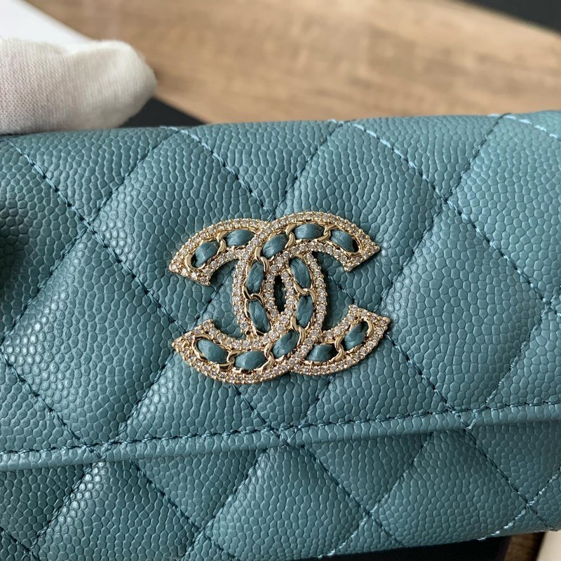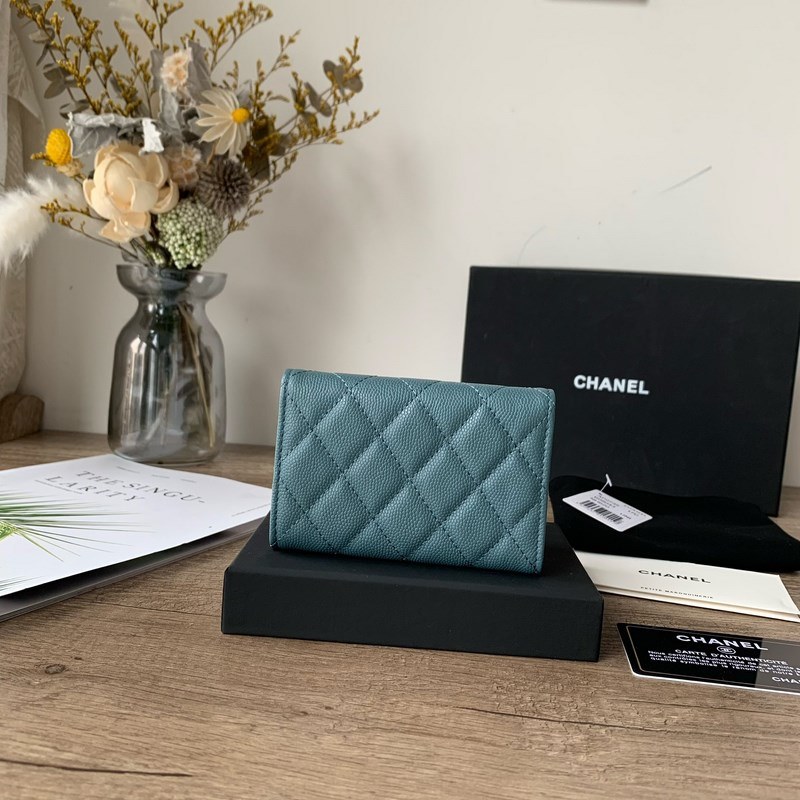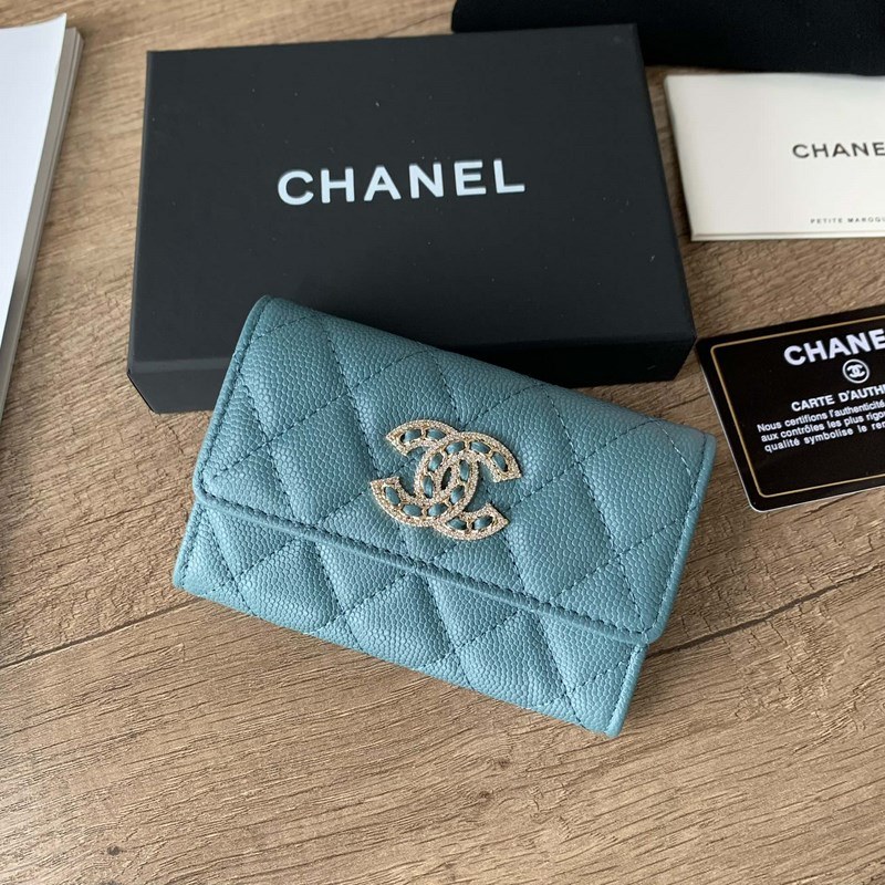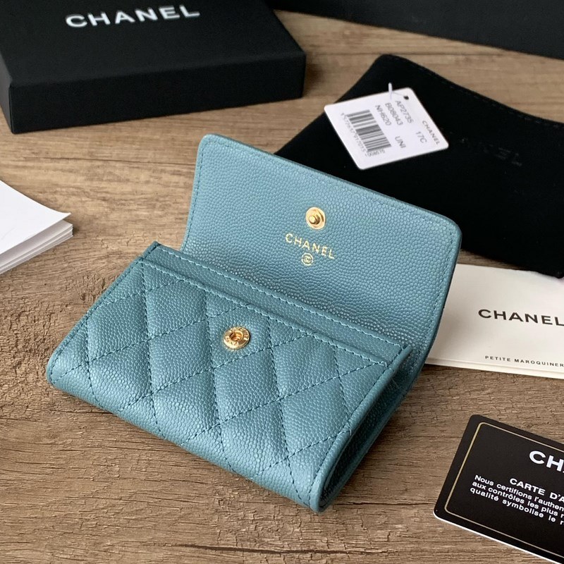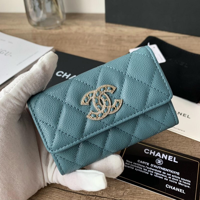 CHANEL Haze Blue Diamond Caviar Coin Purse Card Holder