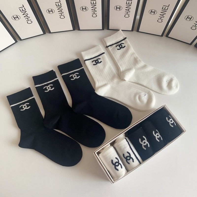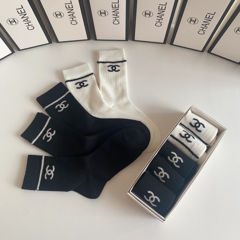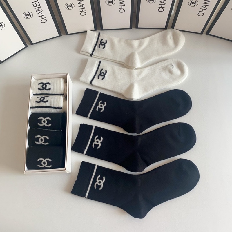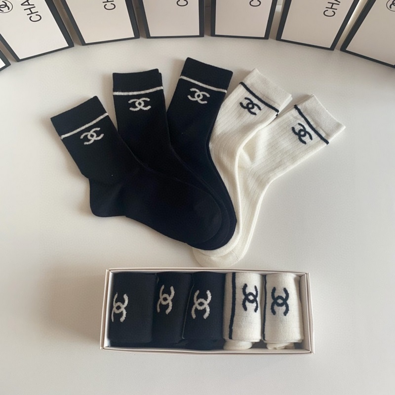 Chanel’s new cashmere classic medium-length stacked socks, five pairs in a box, counter-synchronized tube socks, big brand out, a must-have for fashionistas