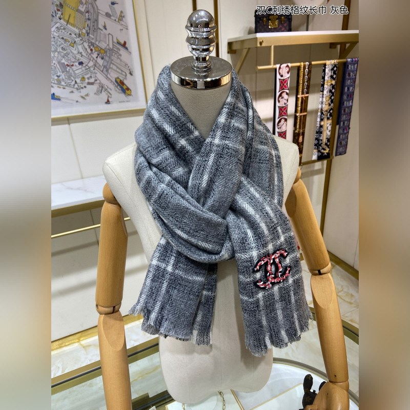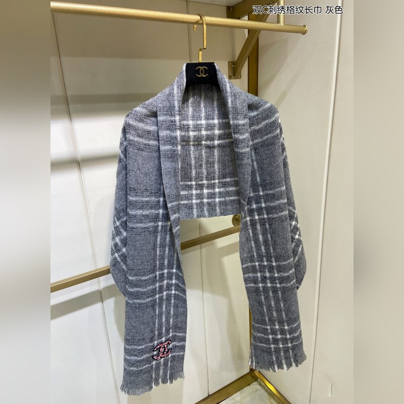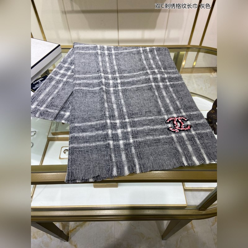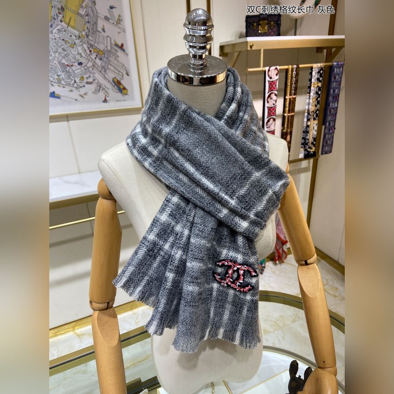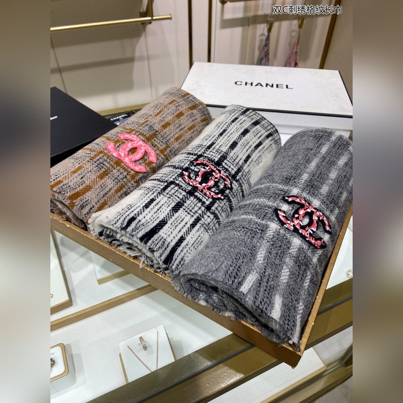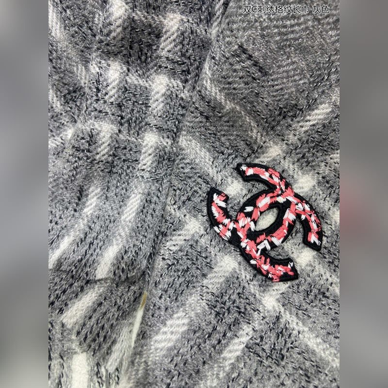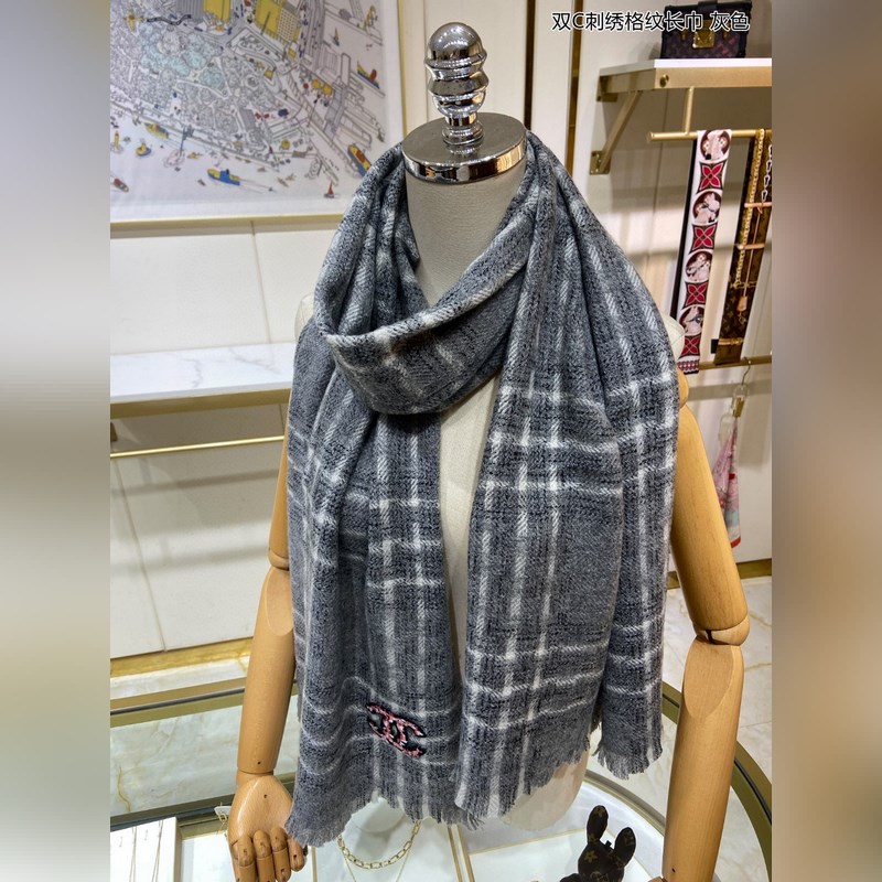 New double C double C embroidered plaid long scarf Chanel woven style, literary and artistic temperament combined in one, the fabric is soft and comfortable, easy to shape, especially versatile, Chanel woven plaid with double C embroidered LOGO elements, making fashion easy. 100% top cashmere, size: 48*190cm. A must-have for autumn and winter