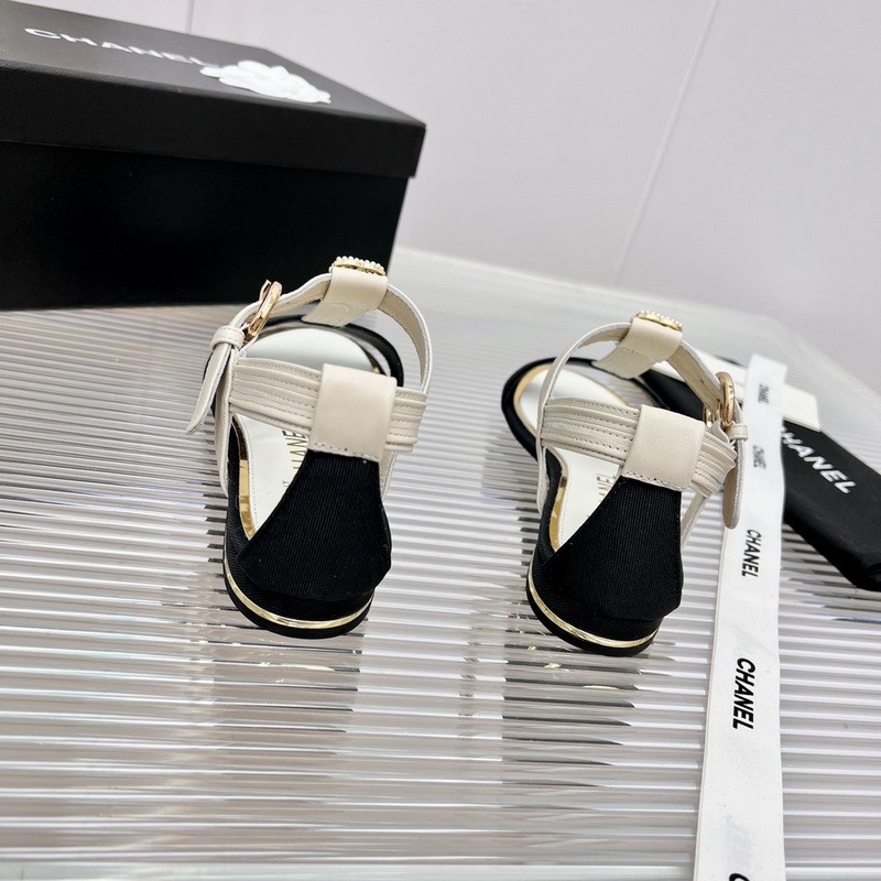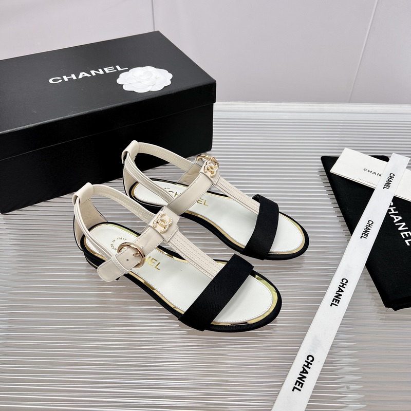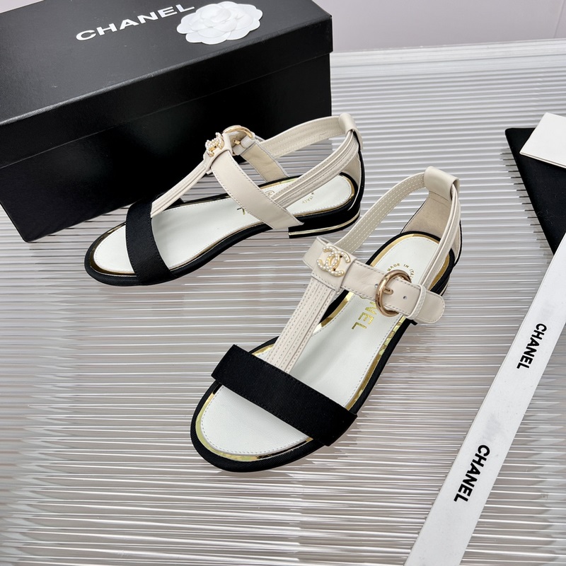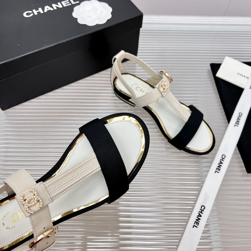 CHANEL small pearl double c brand logo flat sandals, Chanel 23C new woven strap sandals