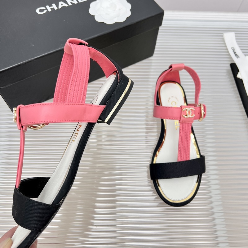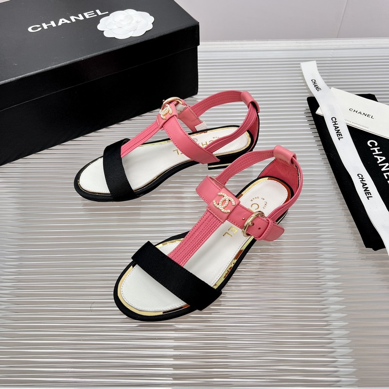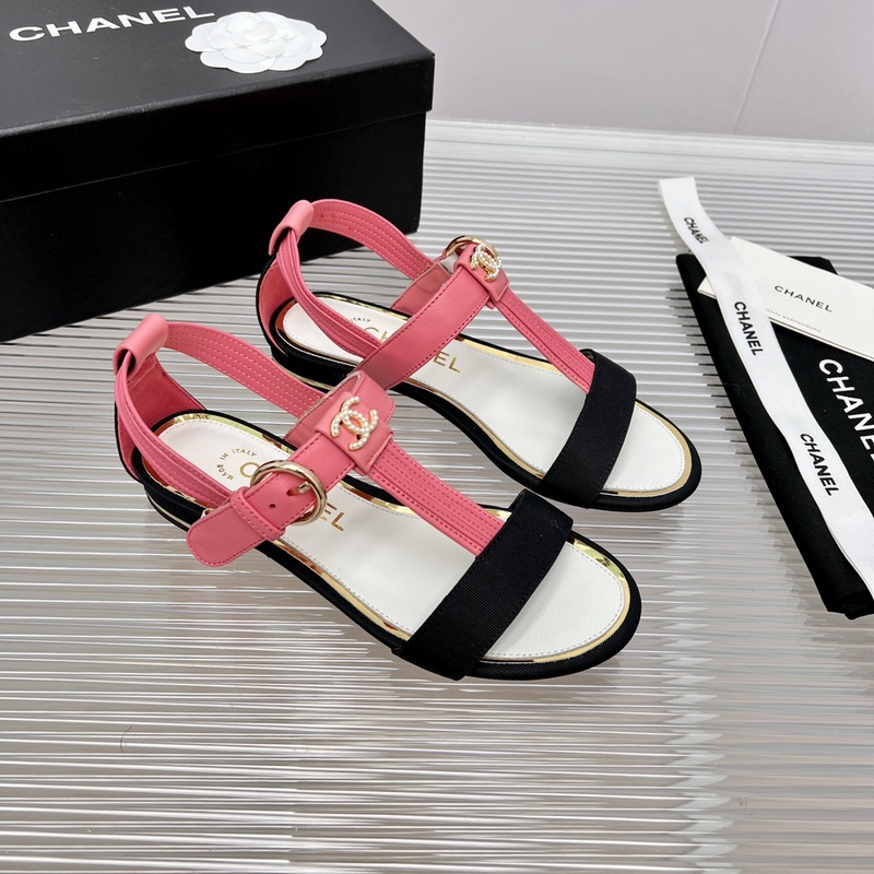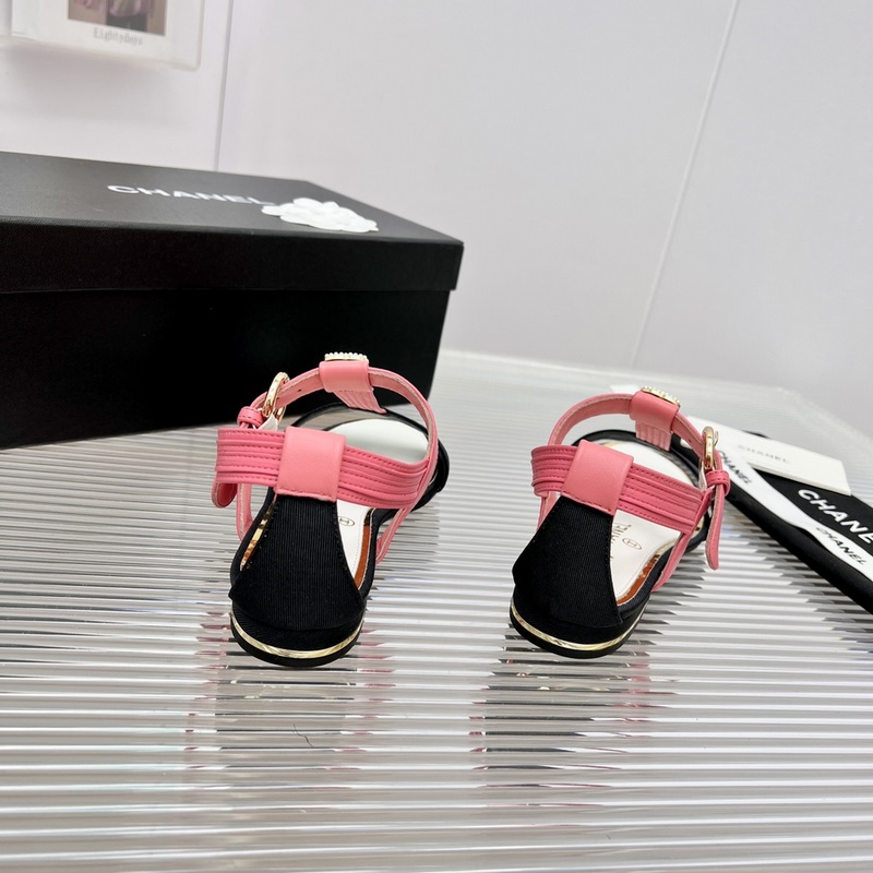 CHANEL small pearl double c brand logo flat sandals, Chanel 23C new woven strap sandals