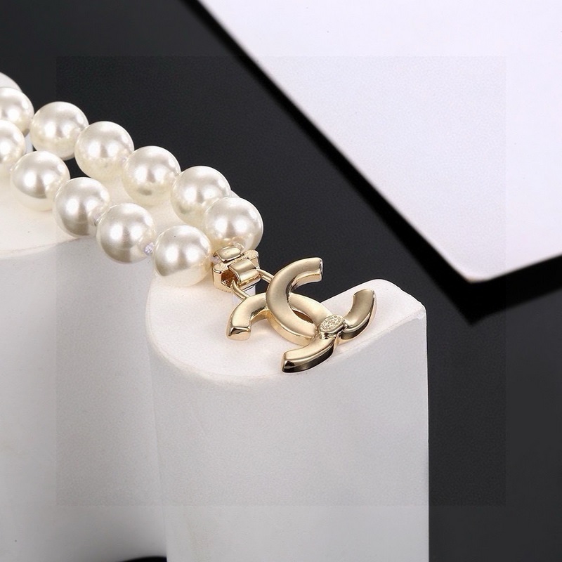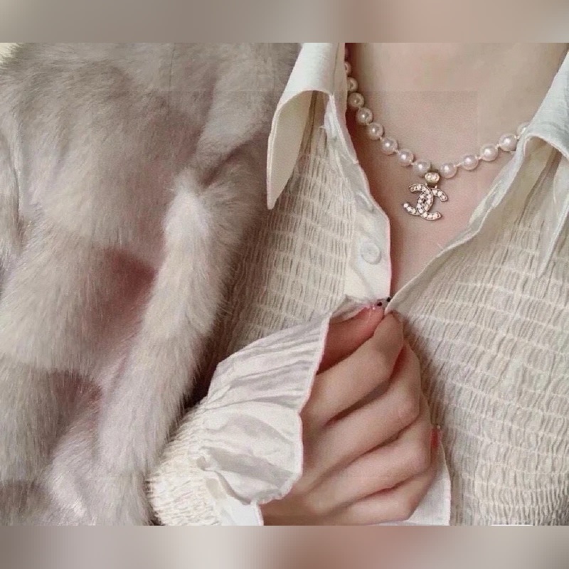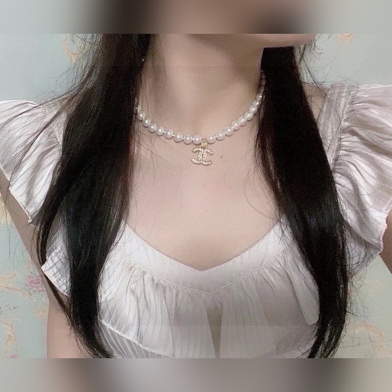 Ch@nel Chanel pearl necklace Glass pearls and small crystals are irregularly dotted with double C and small balls. The neutralization with frosted hardware makes it more unique and fashionable. Brass material