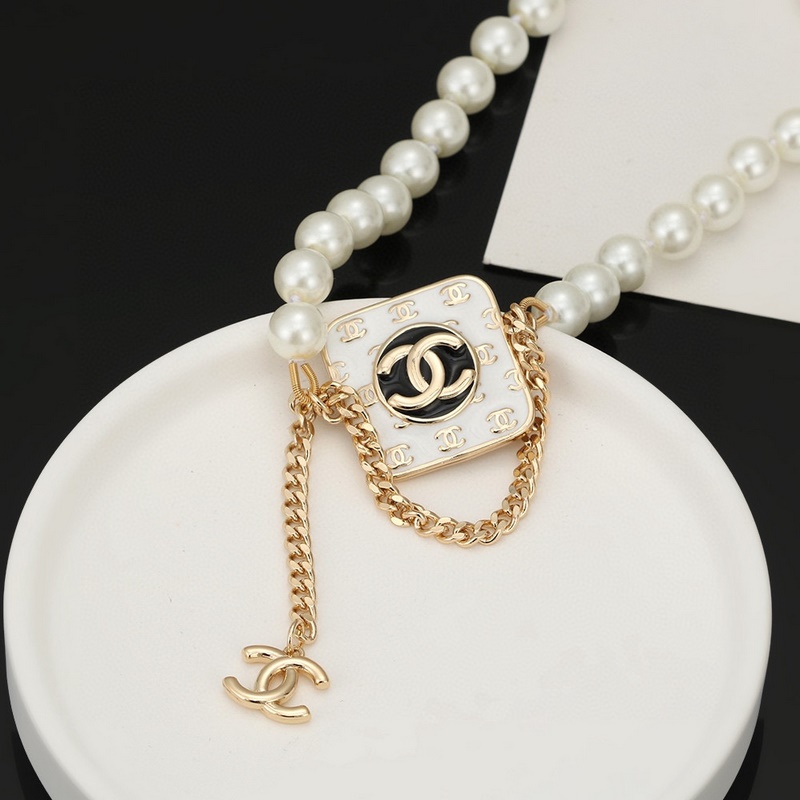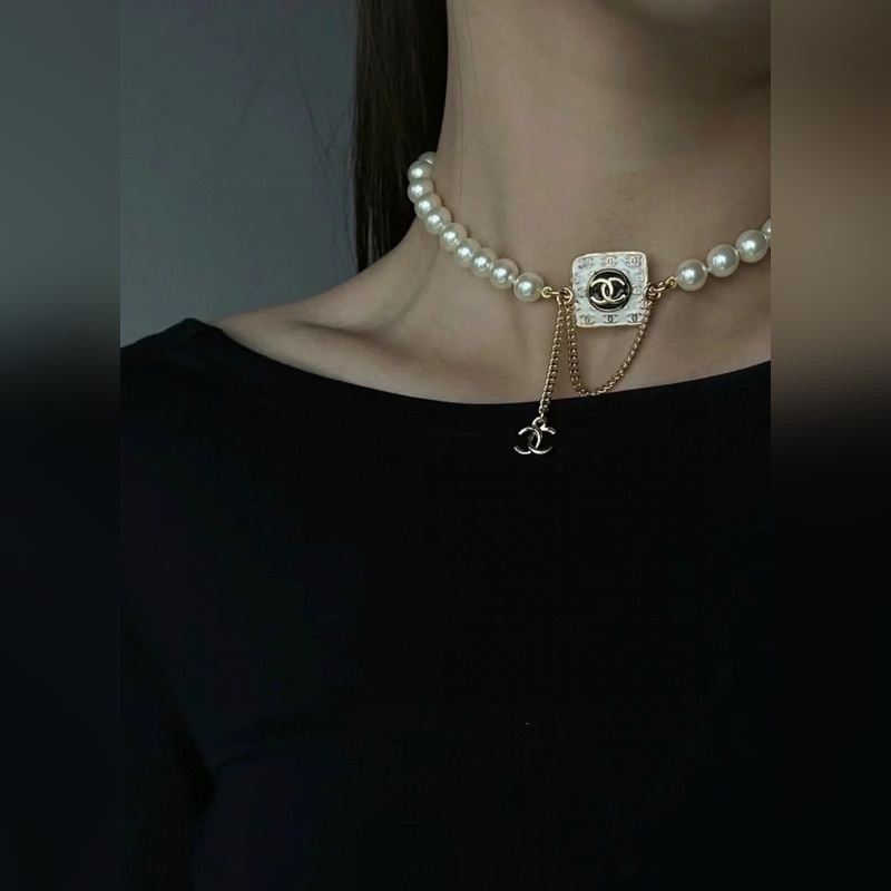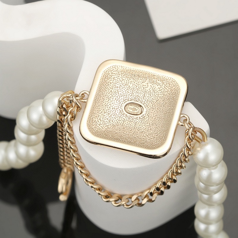 CHANEL small pearl square necklace, high-end quality, counters with the same material, exquisite workmanship, heavy version, very design sense of simplicity, gentle and elegant, especially gentle. The classic double C is embellished with Swarovski pink rhinestones, blingbling super flash, luxurious and expensive