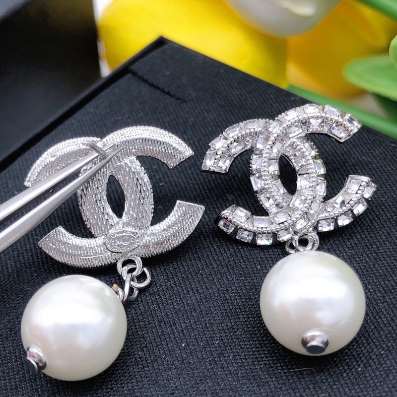 925 sterling silver needle, brass material, Chanel classic logo Chanel earrings, goddess must-have, super thin face, consistent material matching, silver European and American style