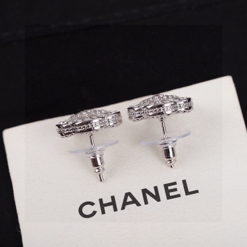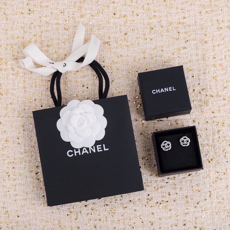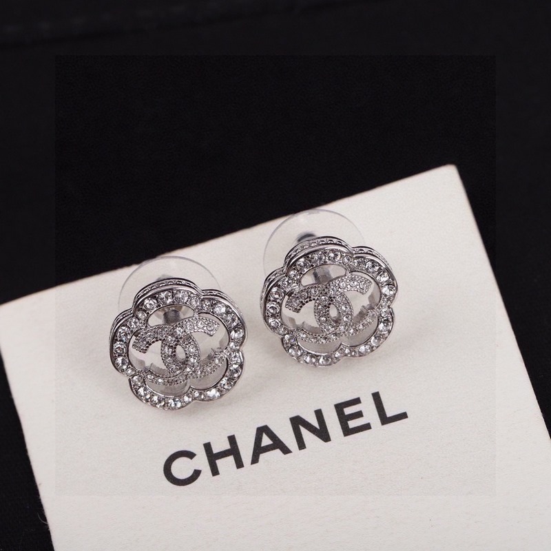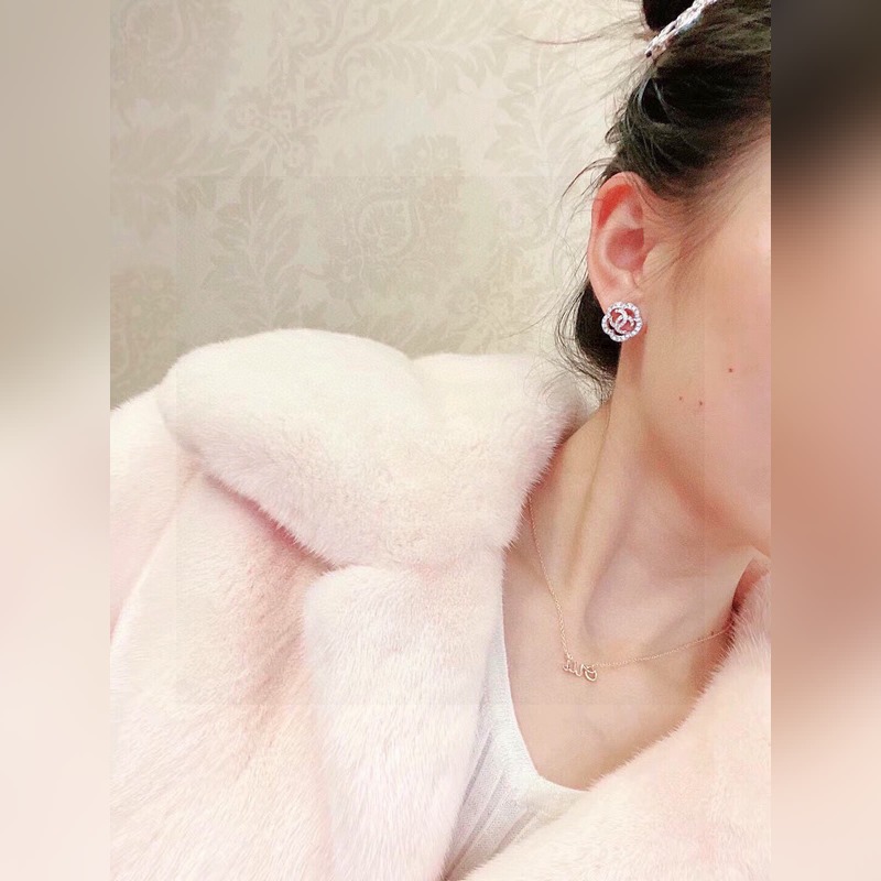 New spring and autumn series Chanel camellia earrings same material 925 silver needle high quality fairy all-match style