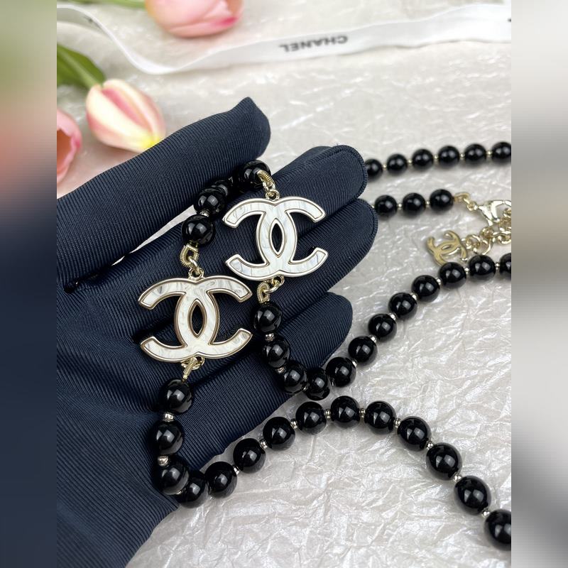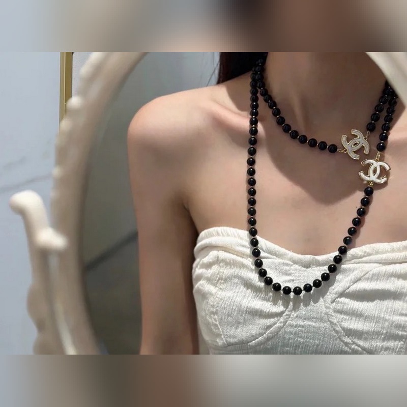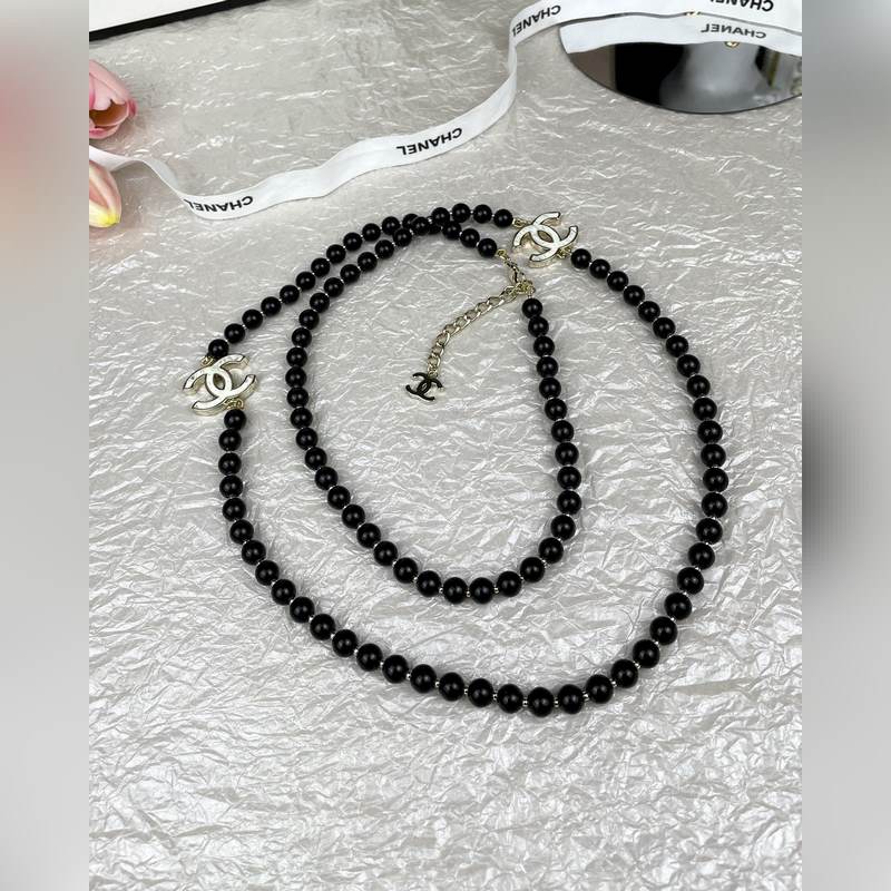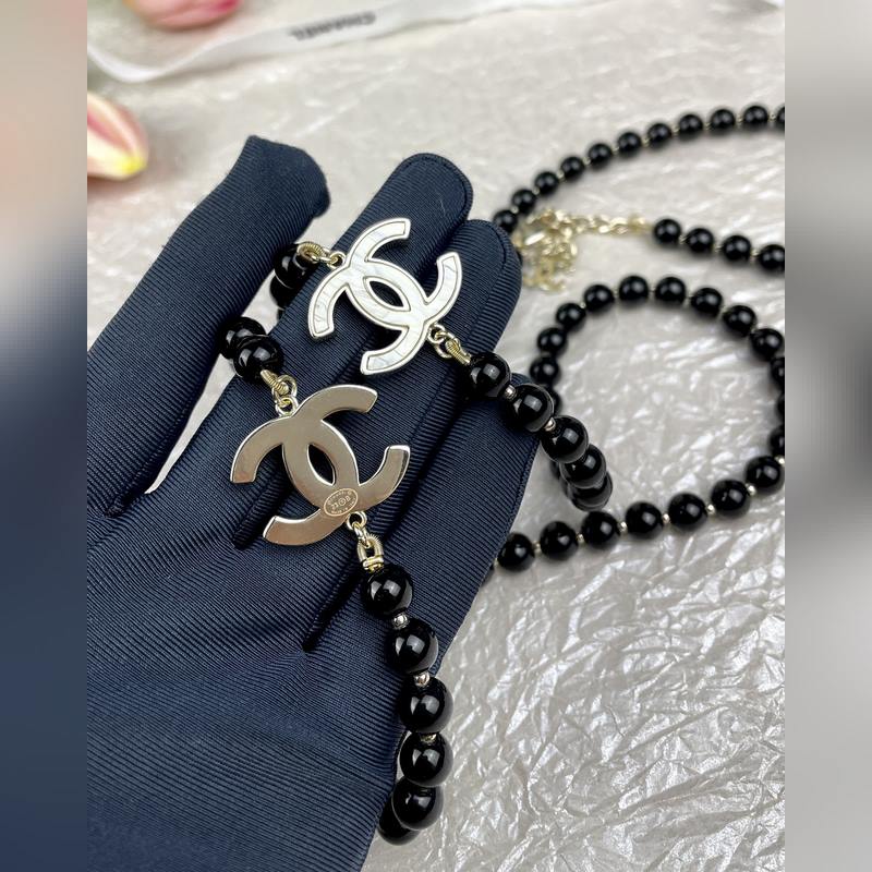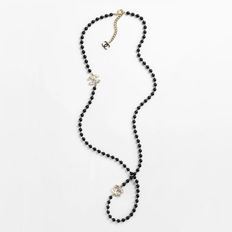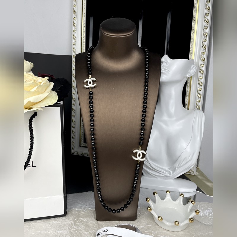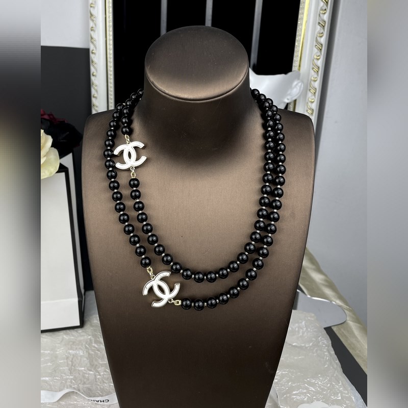 Chanel Black Beads White Double C Pearl Sweater Chain