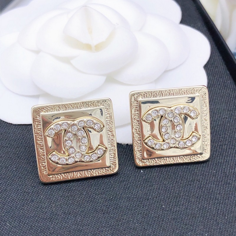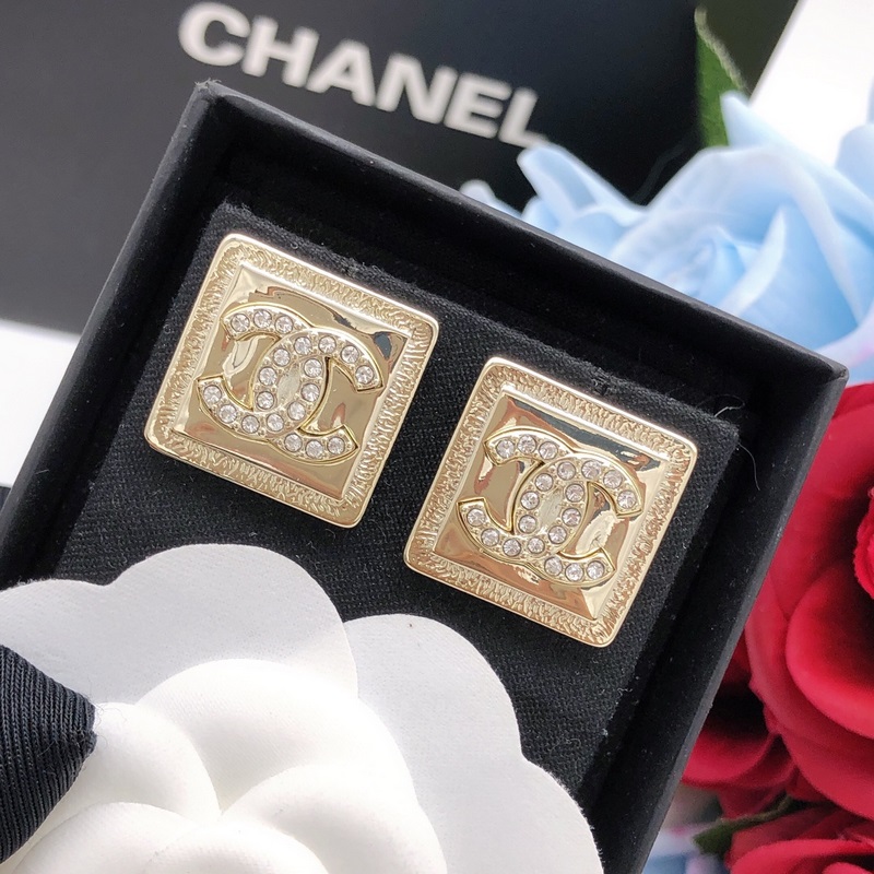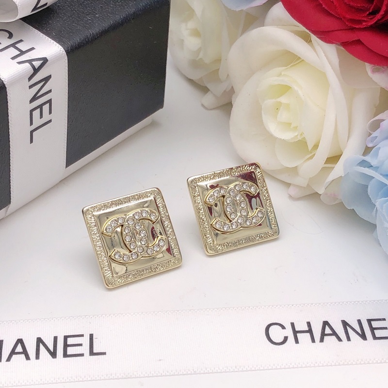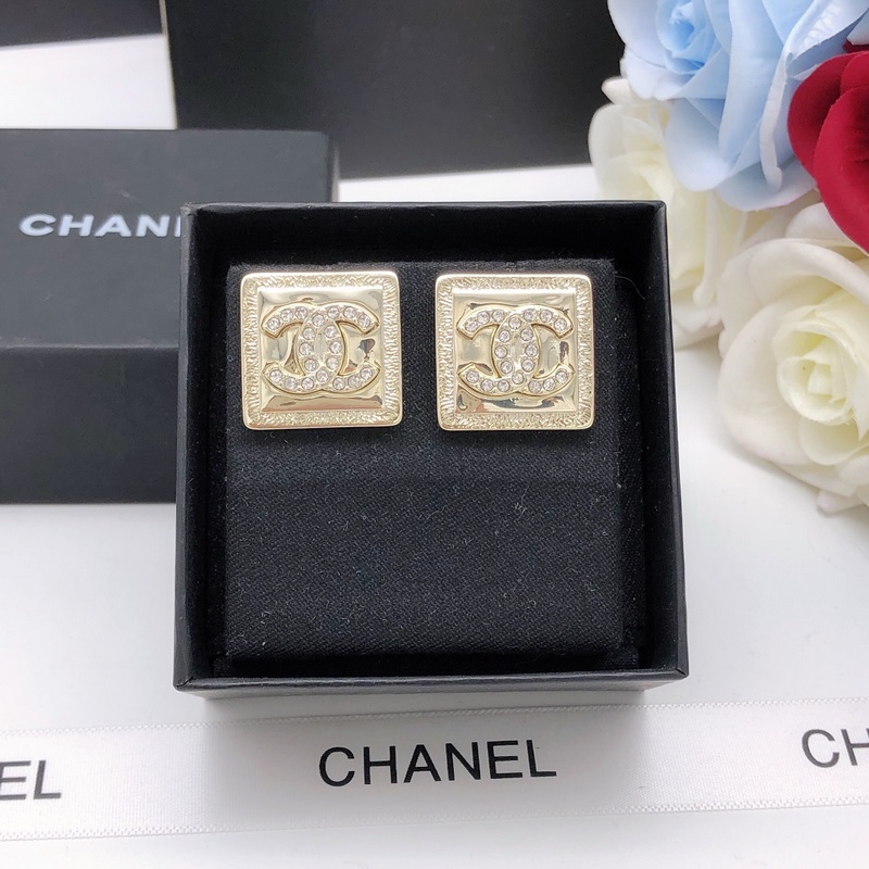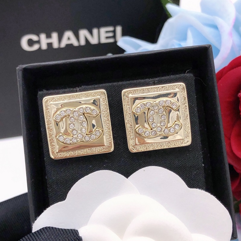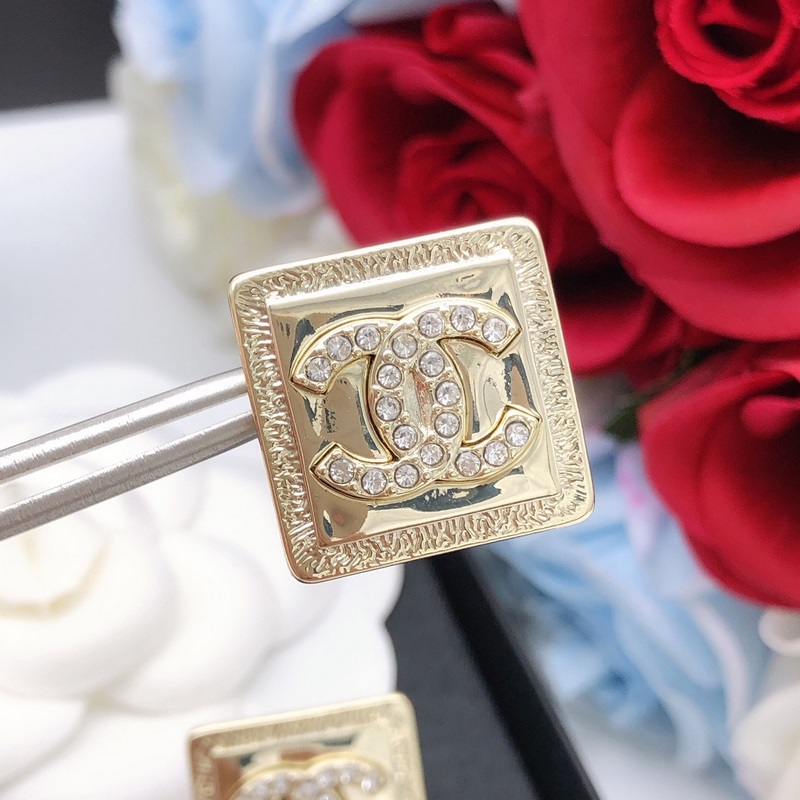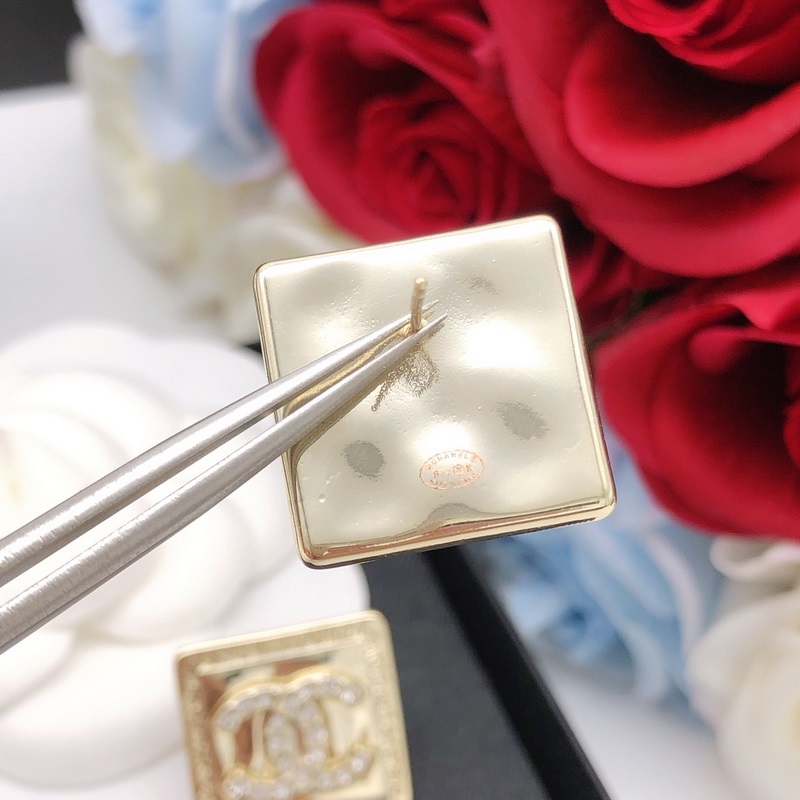 No. XED0073Chanel goose square polished earrings with diamonds