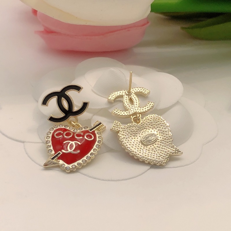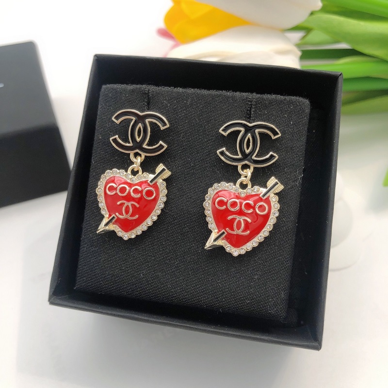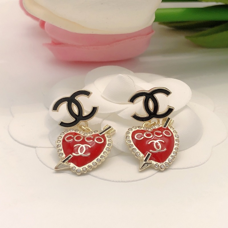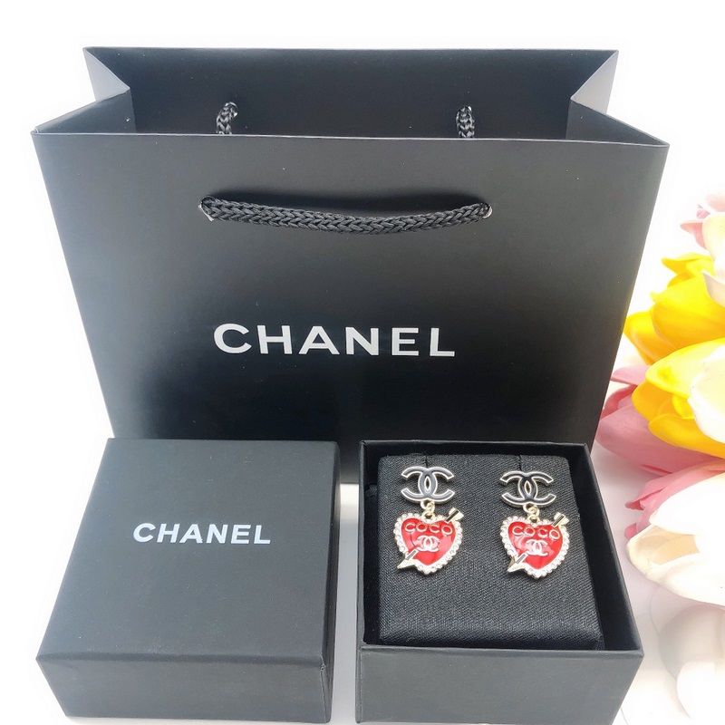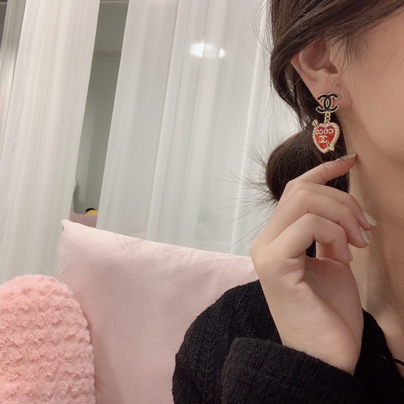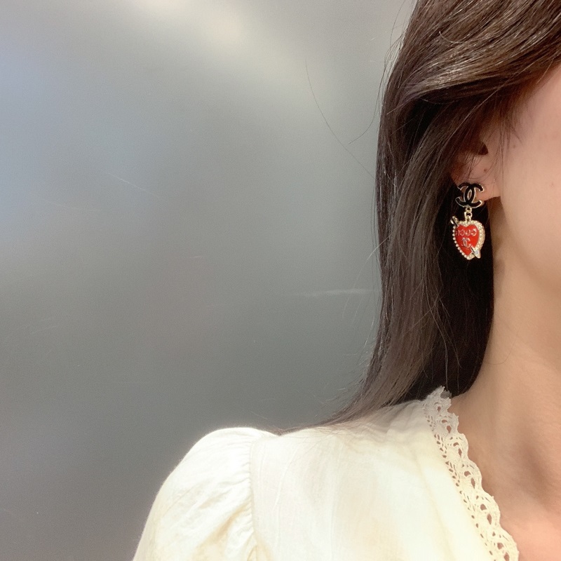 CHANEL original new product Xiao Chanel double c earrings red heart COCO earrings High-end quality, 1:1 mold opening at the counter, the original brass material of the counter, high-grade 925 silver needle anti-allergic treatment, CNC technology, every detail is impeccable, versatile and not picky about face shape, fashionable and confident without being ostentatious, making it extremely charming. A must-have for goddesses