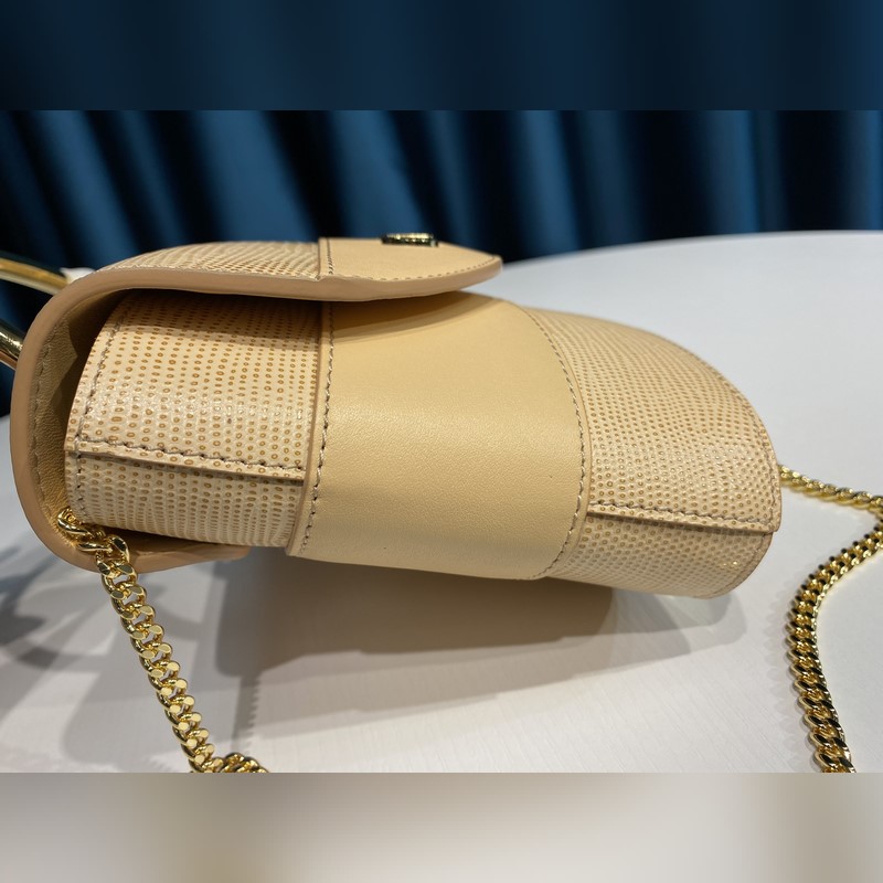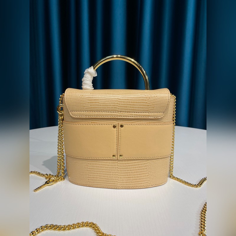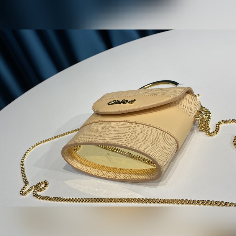 Chain bag with lizard embossed calfskin and smooth calfskin – Carrying methods: hand, crossbody and shoulder – Chain strap and gold metal handles – Magnetic clasp – 1 leather flat pocket – Padlock inspired by the iconic Paddington handbag – Cotton canvas lining – This mini bag is made of semi-aniline leather, using the “tamponato a mano” technique to create embossing and a slight two-tone effect. Tanning gives the leather its individual characteristics, combined with a light and translucent aniline finish, it presents a unique tone and wrinkles size16.5*7*15.5 Style number: 6035 Number: Chloe96181050
