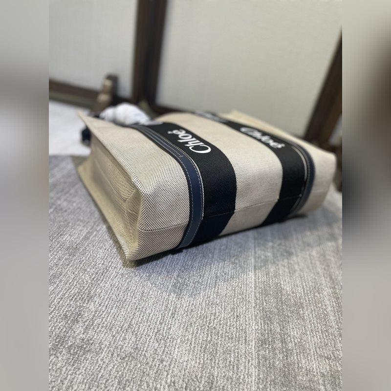 CHLOE woody Tote is limited edition midnight blue with black webbing. The black webbing is paired with beige canvas fabric. I heard that the brown series that has been released before is still out of stock. I suggest that you should act early for this limited edition color. The body of this bag is made of tightly woven waterproof cotton canvas. The white logo strap that connects the entire handbag and forms a strong contrast with the black is the highlight of the whole bag. The simple and fresh design is full of French casual feeling, which is really popular. The tote bag comes in three sizes. This tote bag – comes with an exclusive gift bag (bow) Model number: 6043 Medium size: 37*26*12cm Code number: HH9618850