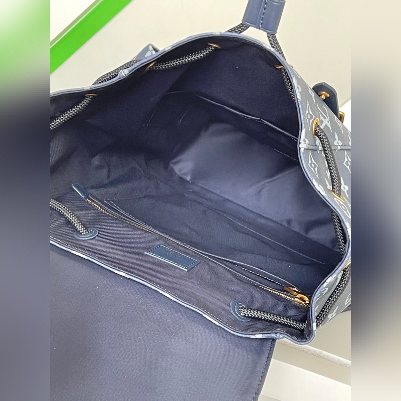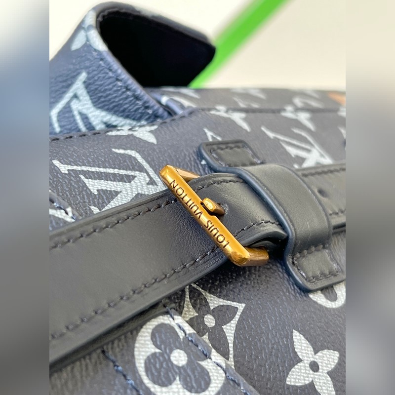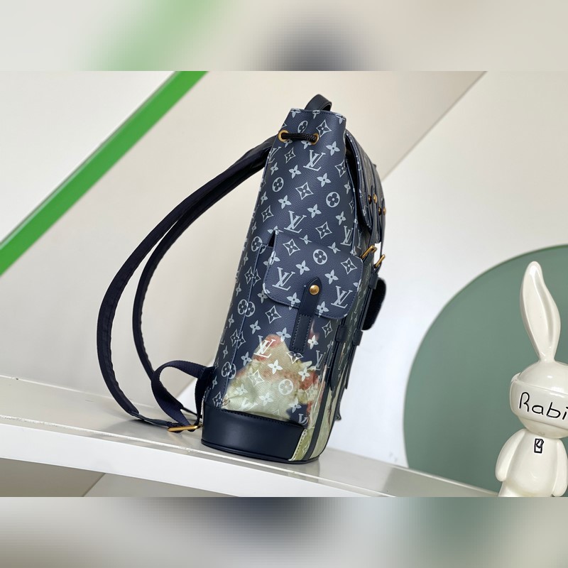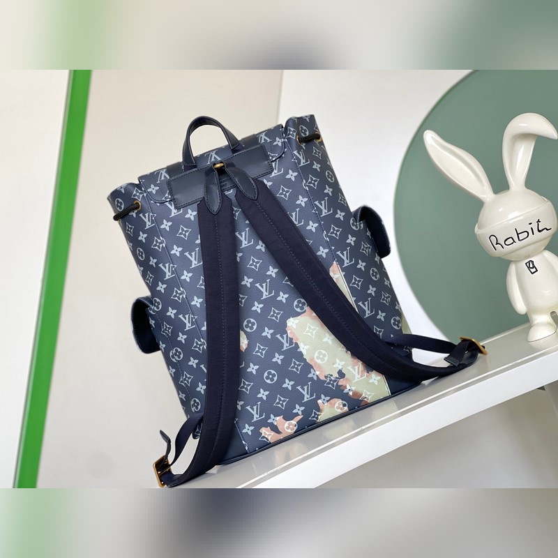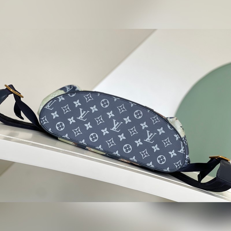 Haiyuan Foreign Single Du Shijia Shoot M46805 Blue Graffiti Backpack Series Christoher Small Backpack is designed with the comfortable beach fire as inspiration, and presents the blue and orange cold and warm tones respectively, forming an opposing beauty. As the last design of the Virgil team, the old flower denim jacket is presented with a faded effect, and the abstract shape of fireworks fits the design theme. The style is younger, and the overall appearance is still good, a beautiful ending. Size 38 x 44 x 21 cm.