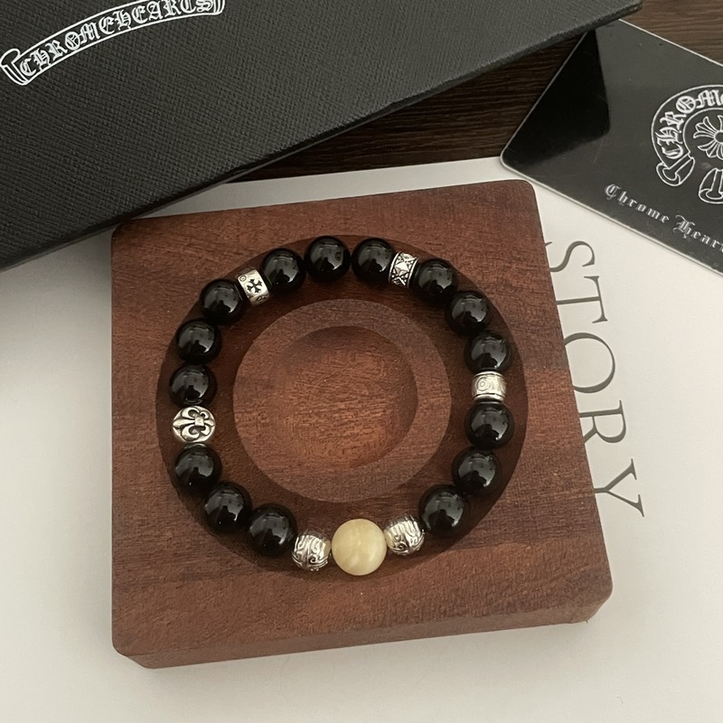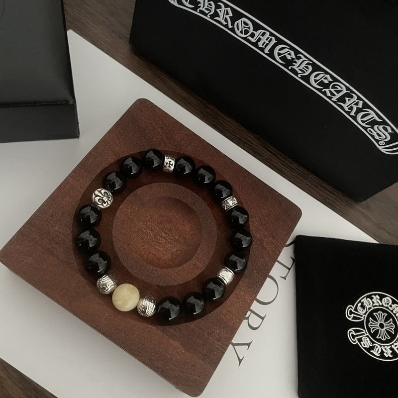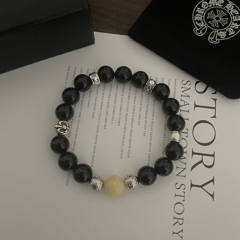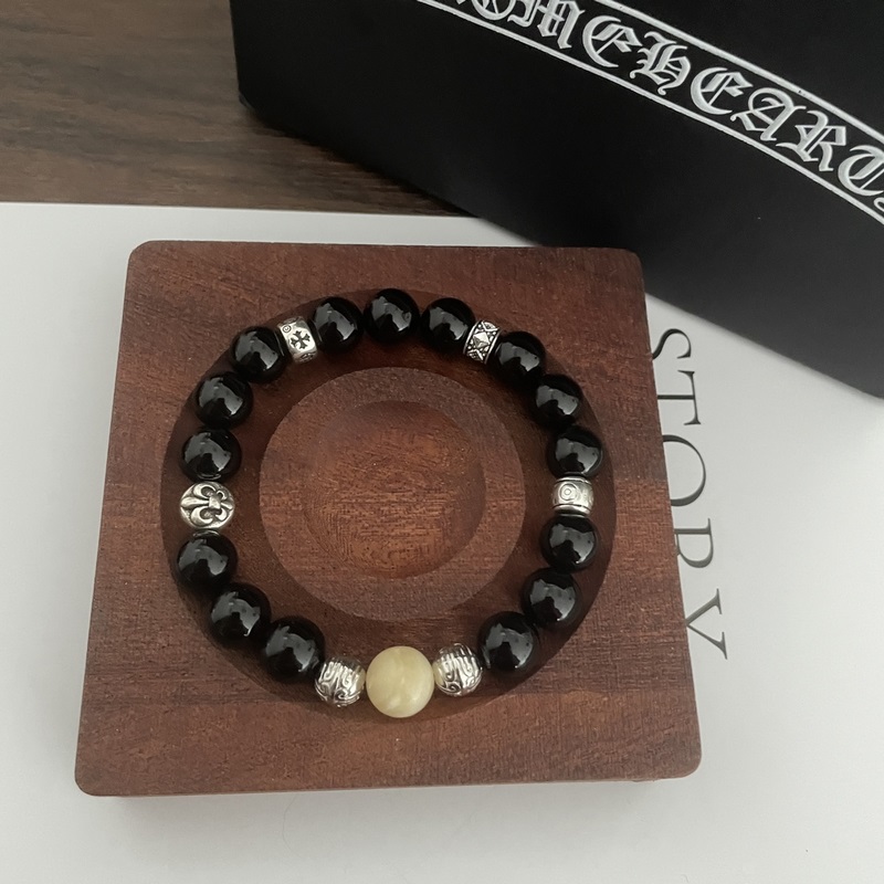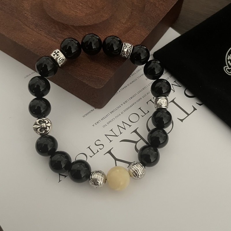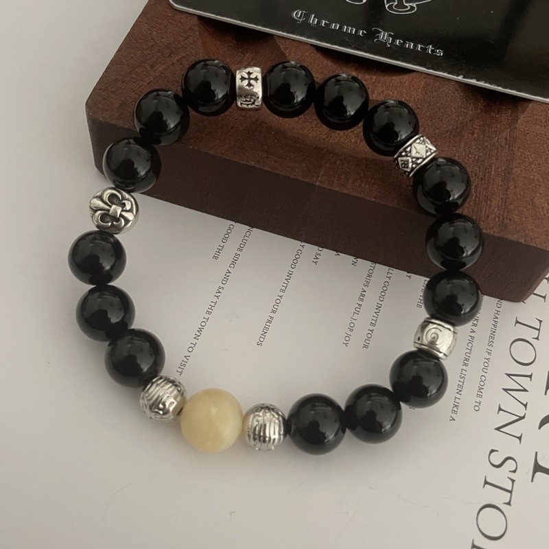 Chrome Hearts Black Onyx*Multi-element Cross Bracelet, same style as G-Dragon, retro style, original replica, pure handmade ~ genuine mold, trendy and fashionable, can be worn by men and women, couple style, rock punk Thai silver style, retro elements, trendy and versatile, same style as the official website