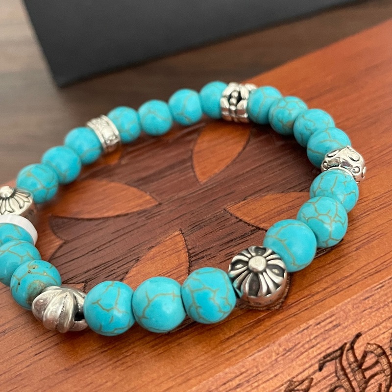 Counter exquisite version Chrome Hearts turquoise*multi-element bracelet G-Dragon star same style Retro style Original replica Purely handmade ~ Authentic mold Fashionable must-have Men and women can wear the same couple style Rock punk Thai silver style Retro elements Trendy and versatile Same style as the official website