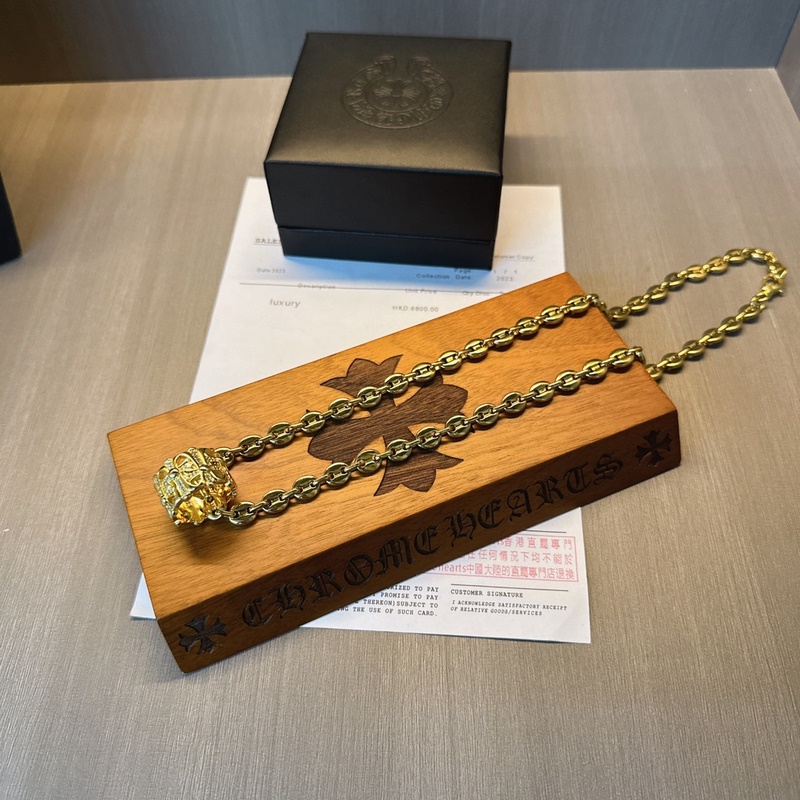 Chrome Hearts gold necklace, different patterns and design styles present a unique cross. The Scout flower is the symbol of Chrome Hearts, so it is more enduring. The genuine Chrome Hearts is of the same quality. Retro and old gray oxygen degree. Seiko version ~ a must-have for fashion. Both men and women can wear it. Fashionable, rock punk style, retro elements, couples’ same style