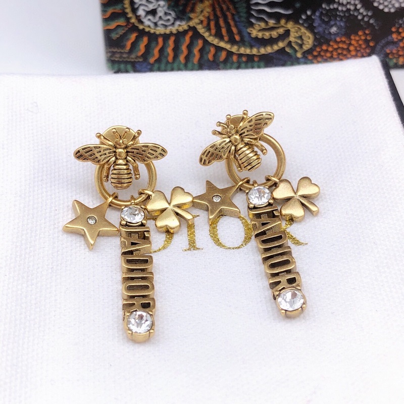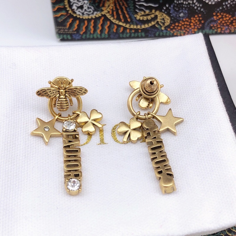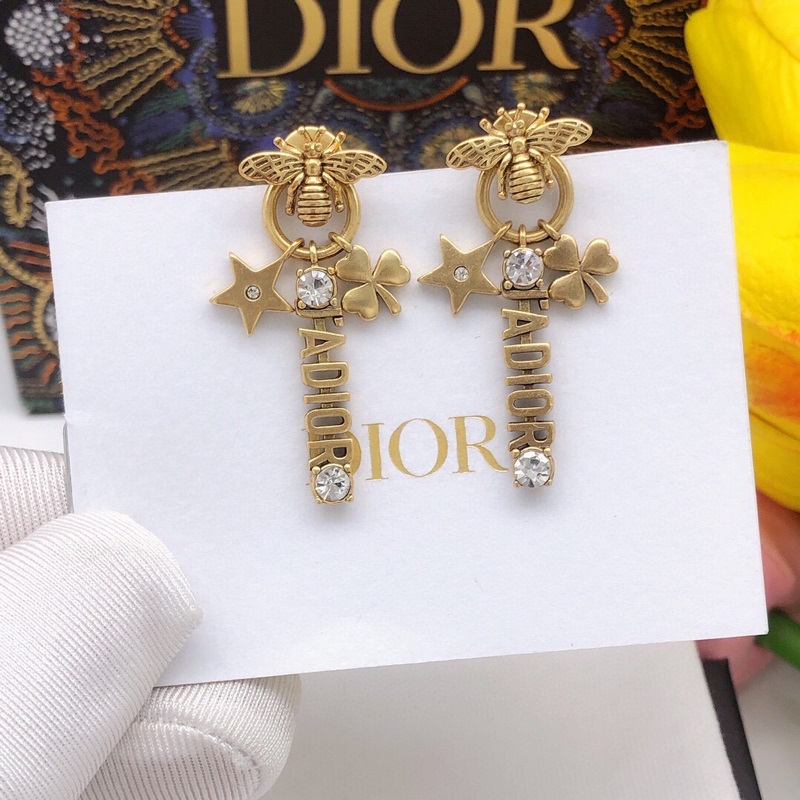 CD-size pearl star bee earrings Same material 925 silver needle Di0r new style