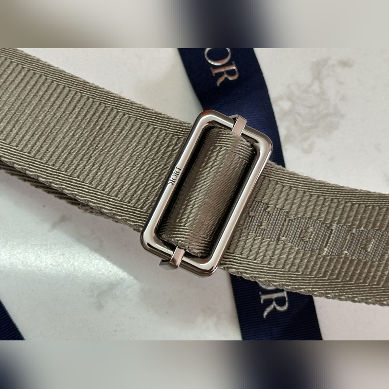 Adjustable shoulder strap in nylon jacquard with Christian Dior logo and calfskin leather