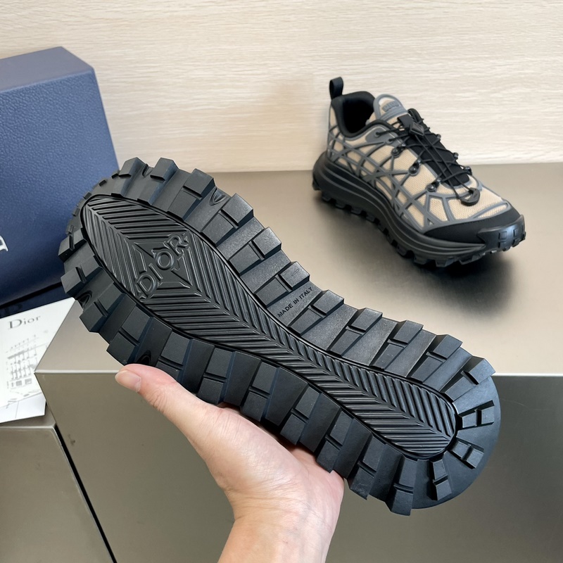 This low-top B31 Runner sneaker is a new model this season. It made its debut at the Dior 2023 Men’s Summer Collection Show. The stylish silhouette combines professional technology with Dior’s haute couture spirit, making it unique. It adopts a mesh fabric upper, paired with colorful zigzag rattan injection rubber to enhance the style. It reinterprets the classic pattern and highlights the futuristic style. The Dior logo is decorated on the tongue and front, the eyelets highlight the style of hiking shoes, and the CD Diamond drawstring highlights the technological charm. The thick rubber textured notch sole provides ideal grip, and the reinforced heel creates an extraordinary comfortable wearing experience. It can be paired with sportswear and casual outfits to create a sophisticated look. Original development, top version on the market, supports comparison, comes with a full set of original packaging, multiple colors available