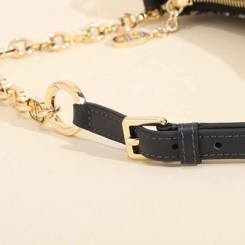 Adjustable shoulder strap, the chain part is composed of gold-finished metal and enamel CD links in the same tone as the leather, with a leather strap.