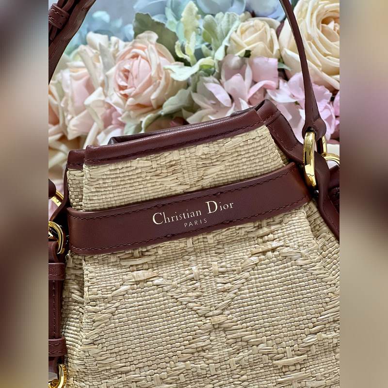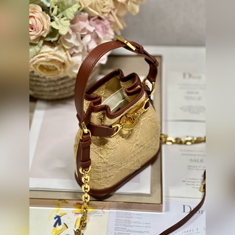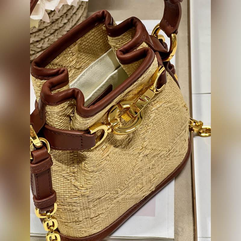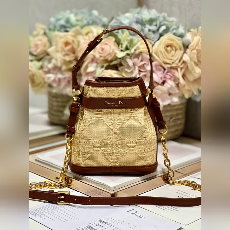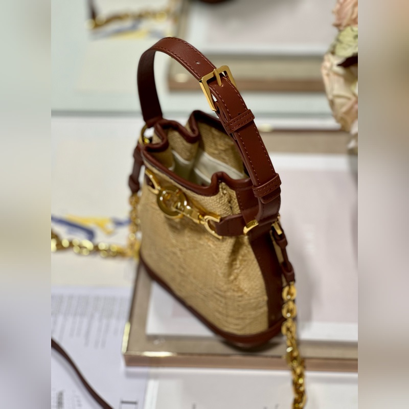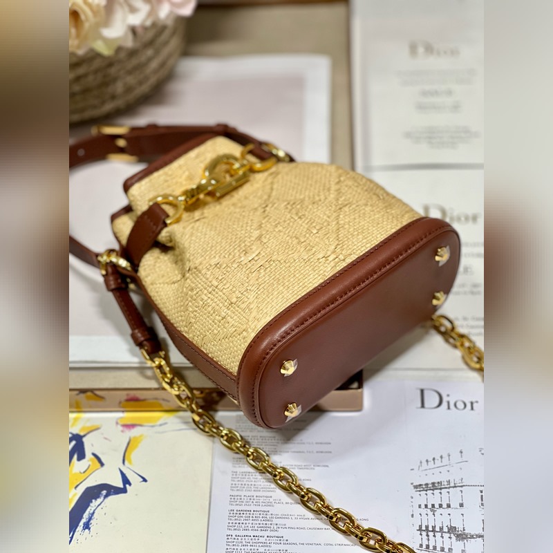 This Cest Dior handbag is a new product for autumn 2023, elegant and classic. It is carefully made of natural grass and decorated with rattan check pattern all over, which forms a sharp contrast with the saddle gold cowhide decoration, making it unique. Bucket bag shape, with CD Lock closure, decorated with knob-style letter D, can safely store various daily necessities. Small style, with top handle and adjustable, detachable chain shoulder strap decorated with leather strap, can be carried by hand to create a relaxed and comfortable look