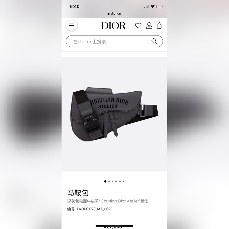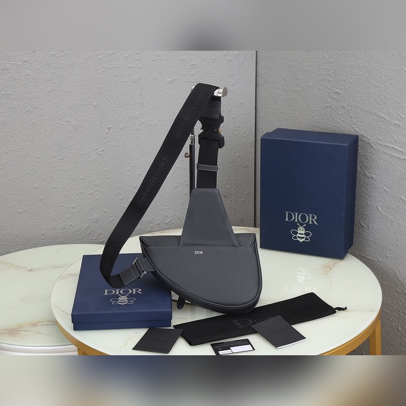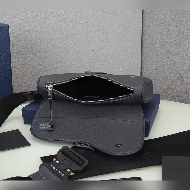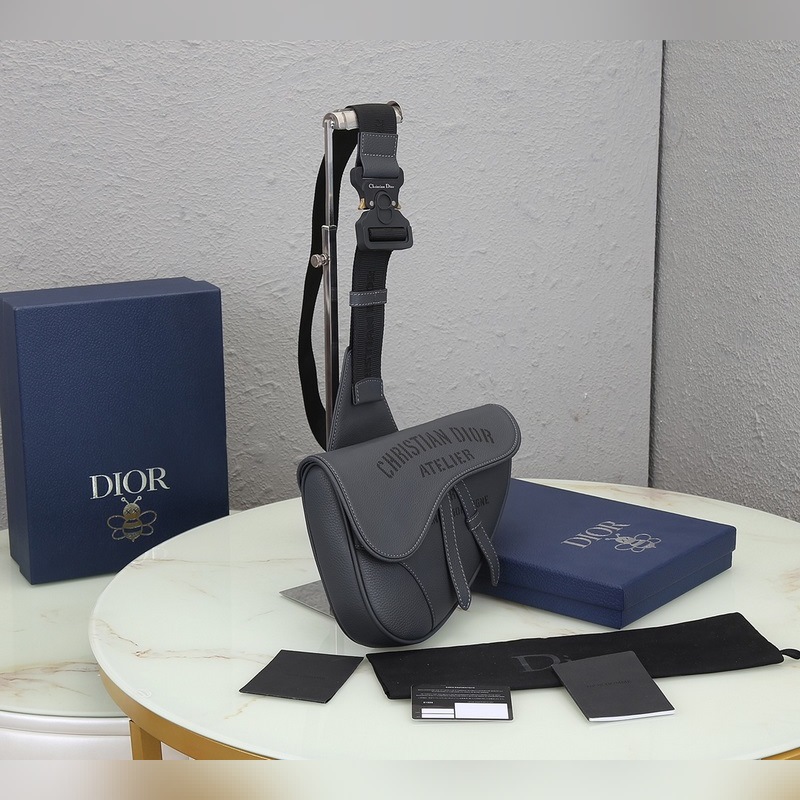 DIOR “Christian Dior Atelier” logo saddle bag/chest bag model 1ADPO093UAT (gray leather silk screen)