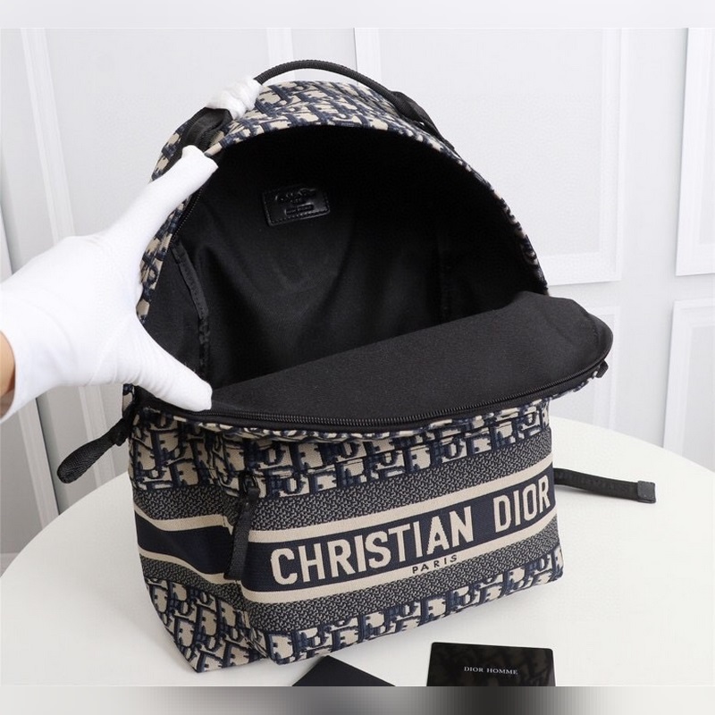 Front “Christian Dior” logo Adjustable shoulder strap Front zipper pocket Backpack style, can also be used as a shoulder bag