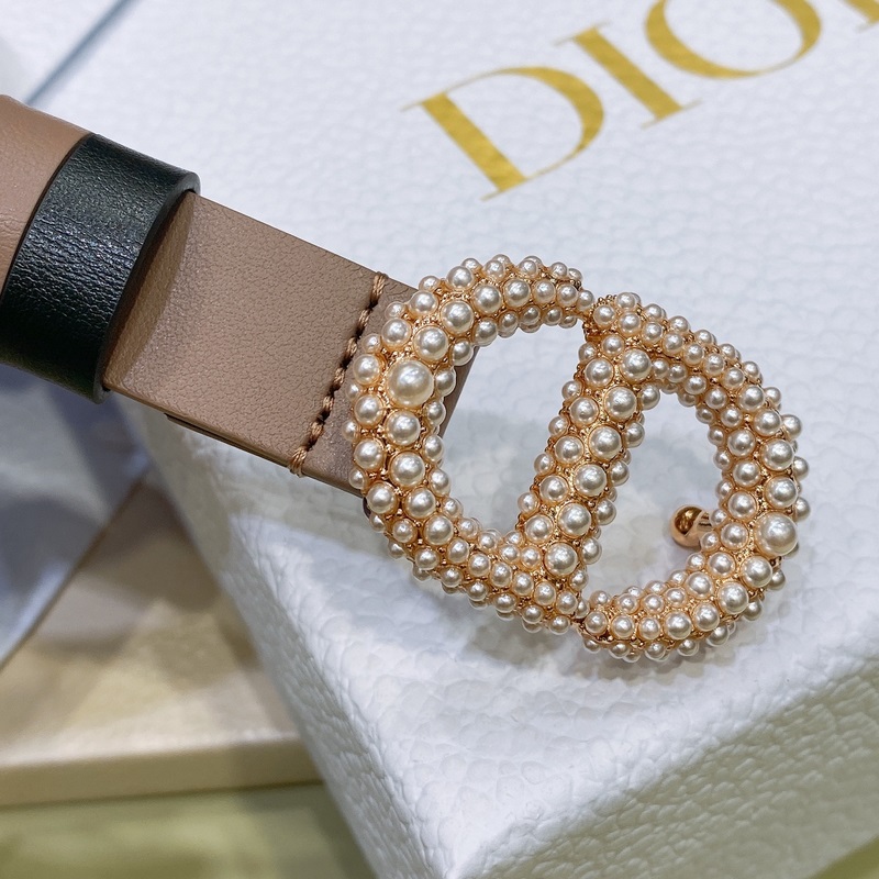 Dior pearl Brass metal Double-sided calfskin with *christian Dior PARIS* logo on the inside Lustrous gold finish Width 2.0cm