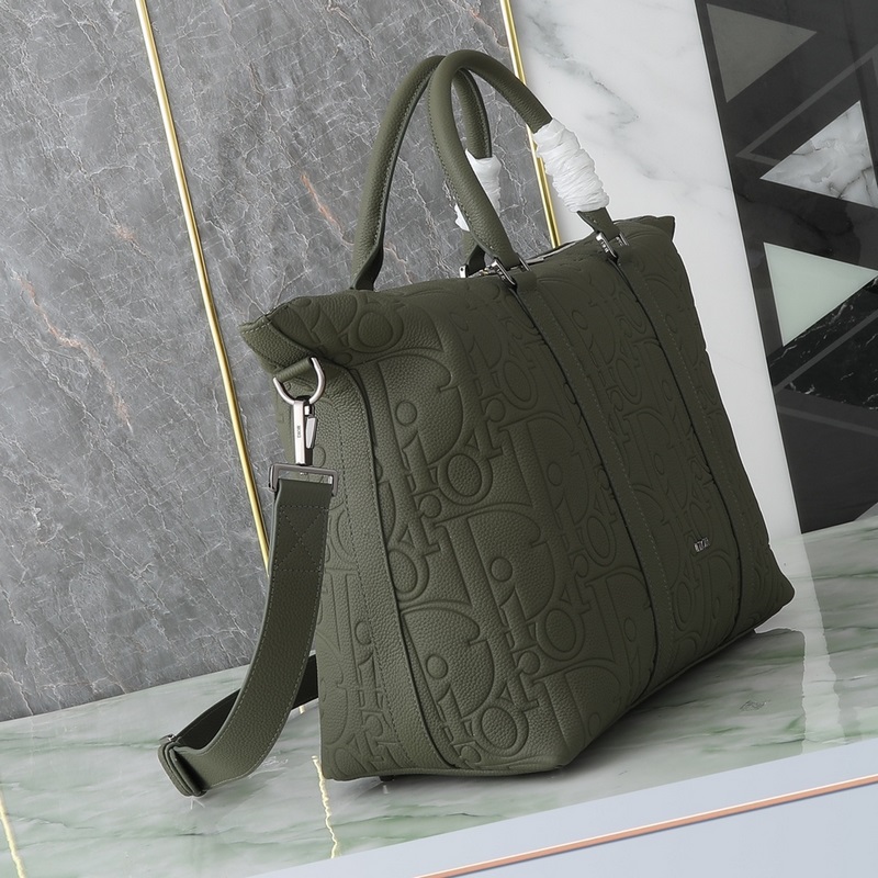 The Weekender 40 is a timeless and elegant bag. The Dior Gravity-effect leather print is a subtle embossing of the iconic motif onto khaki calfskin leather and embellished with the Dior signature, a testament to the craftsmanship of the Dior ateliers. It features a large zipped compartment to store all your daily essentials for a quick getaway. It can be carried by hand or on the shoulder thanks to the adjustable and removable shoulder strap and leather top handle.