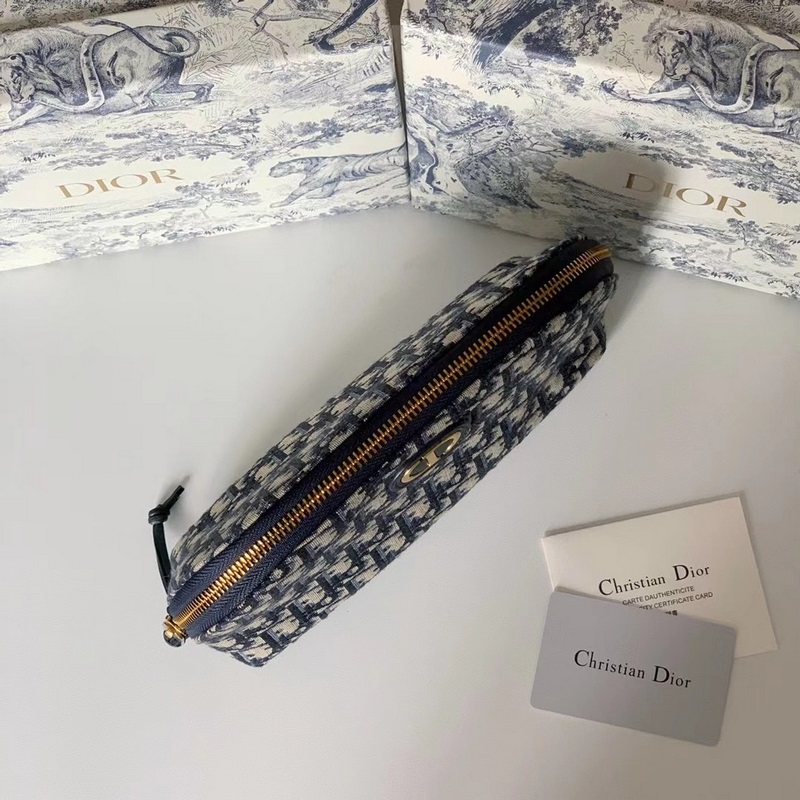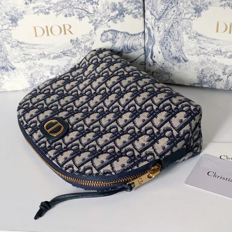 This cosmetics bag features Dior’s iconic blue Oblique print. It features a chic zippered compartment and a patch pocket to store all your beauty essentials. Can be paired with other Oblique print pieces. Blue Oblique print 1 patch pocket Techno lining