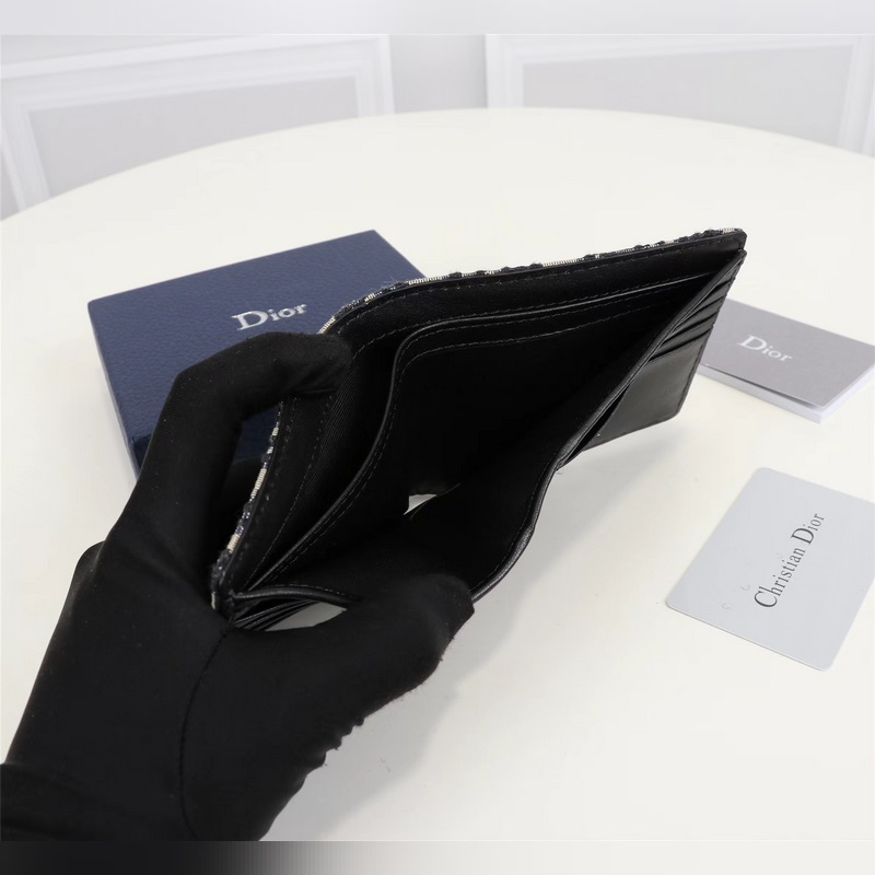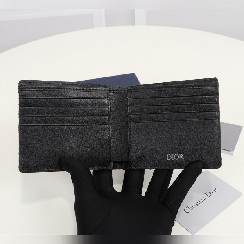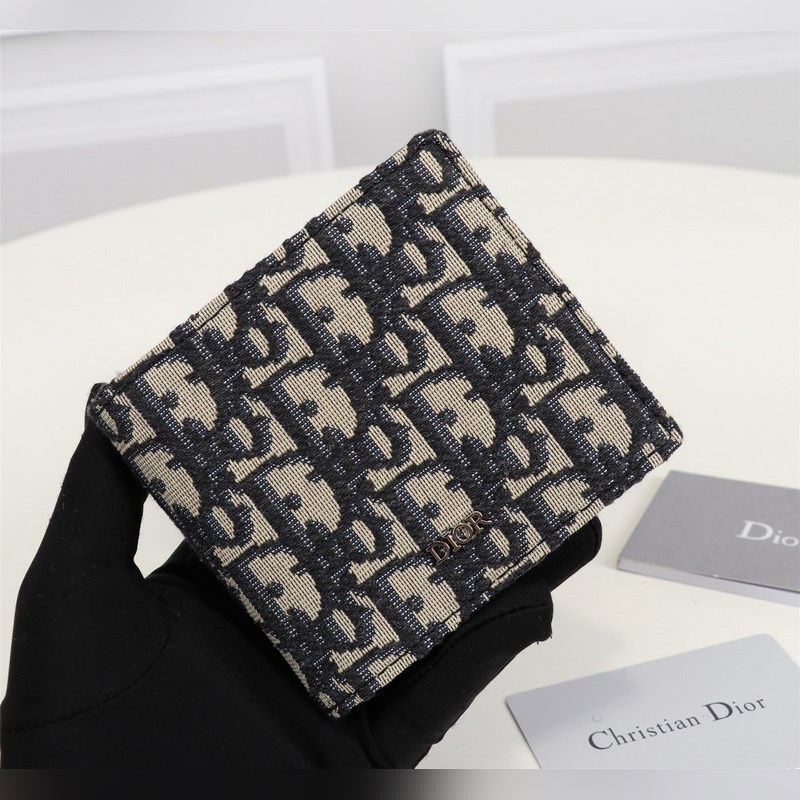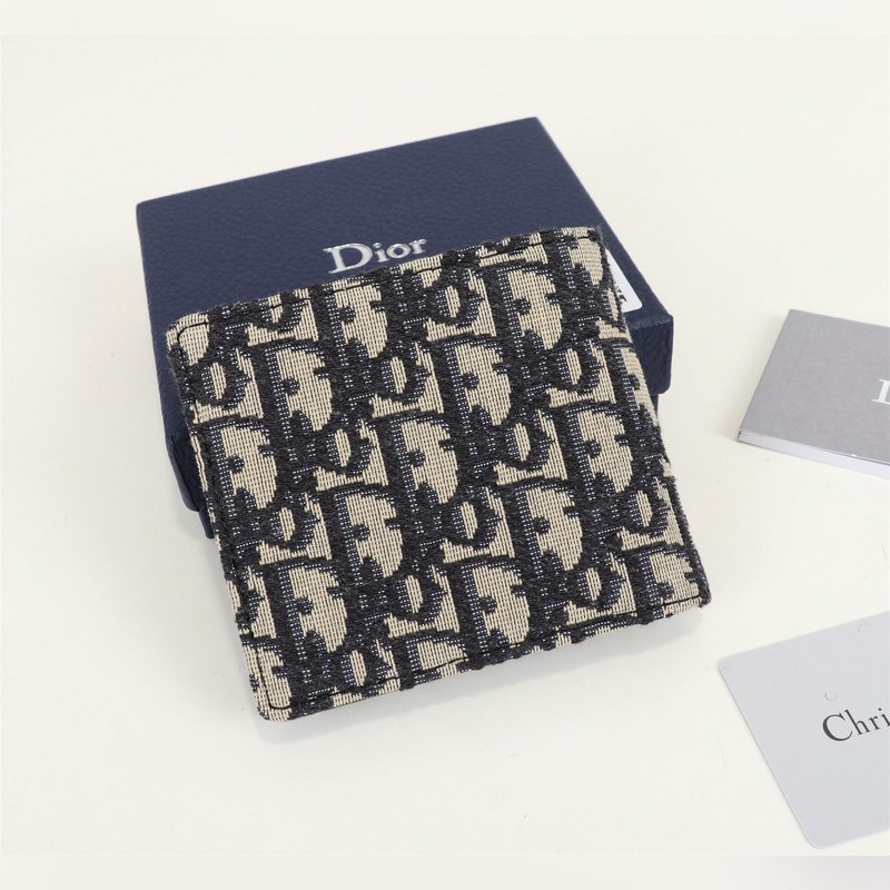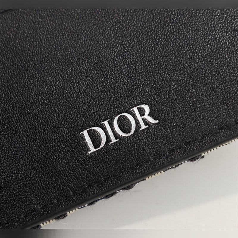 Apricot jacquard Dior Oblique with black top-grain cowhide, built-in eight card slots and two compartments, very practical