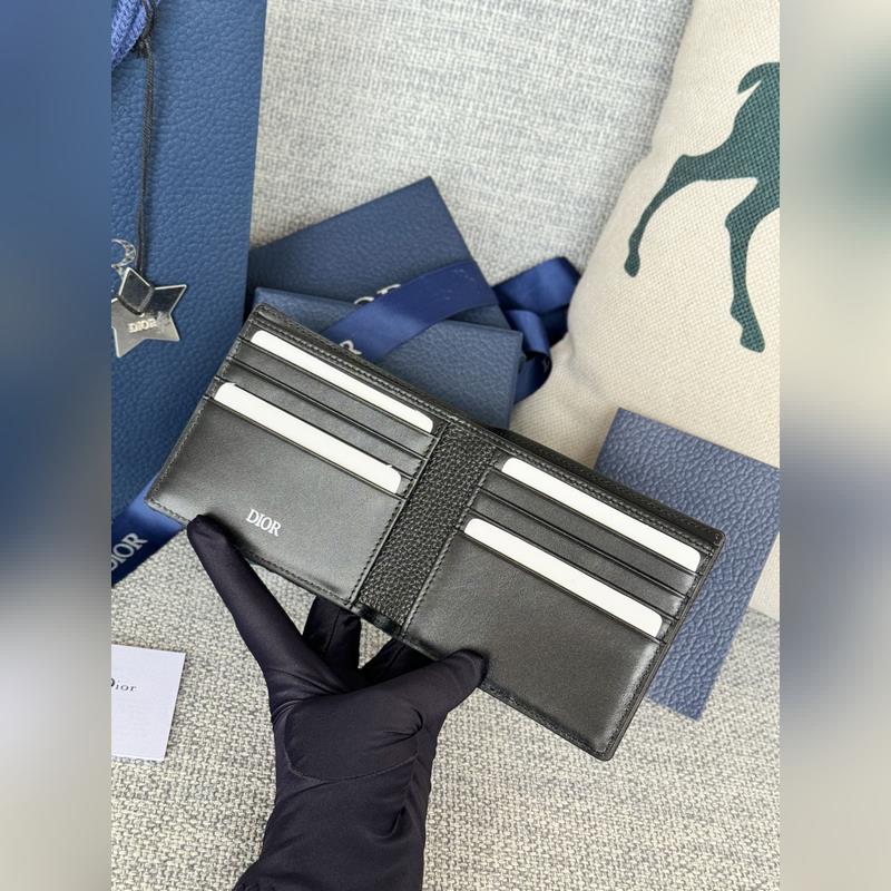 This bifold wallet is an elegant accessory that showcases Dior’s unique leather craftsmanship. Crafted in black Oblique Galaxy print effect leather, imported cowhide leather with reflective lining to create the Oblique print effect. Decorated with Dior logo on the front, the interior features a double cash compartment, two bill pockets, four card slots, and a coin compartment with gusset and snap closure. Bifold style, easy to fit in a pocket or handbag.