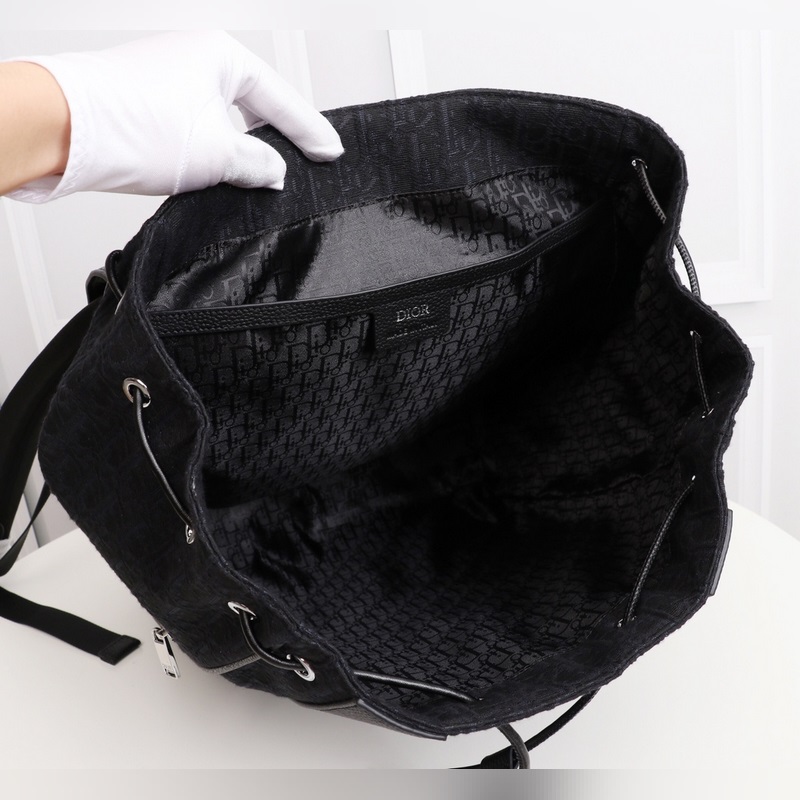 Motion black Dior Oblique black jacquard and black smooth cowhide backpack, external rubber Dior, internal hot-printed Dior logo 1 internal flat pocket, black cowhide finish black nylon adjustable shoulder strap black cowhide handle shoulder strap and hand carry