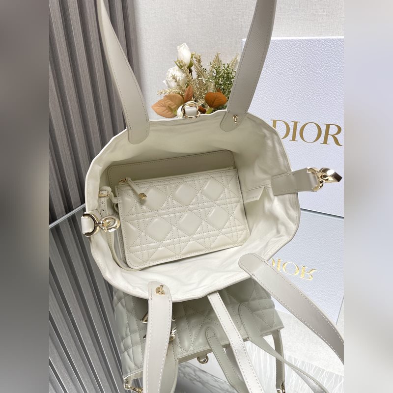 This Dior Toujours handbag made its debut at the 2023 Spring/Summer collection show, with a unique casual and practical design. Crafted from white cowhide leather, it is decorated with oversized rattan check stitching. The spacious interior compartments are matched with small pouches to neatly store various daily necessities. There is also a CD Lock letter D knob-style closure, which can be adjusted on both sides to enhance the style. The leather handle has adjustable details and can be easily carried. CD Lock and lace-up closure DIOR charm Removable internal pouch Adjustable leather handle Dust bag included