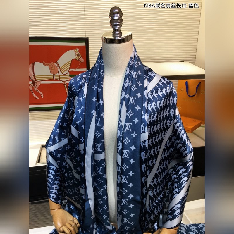Elegant and noble Baby-like soft touch Synchronous counter NBA joint silk long scarf Lvjia x NBA Basket Court long scarf uses Monogram pattern and athlete image pattern to form a houndstooth pattern, with smart tassel trim and NBA leather patch, aiming to win the favor of sports fans. Suzhou satin material is extremely soft. Luxurious touch. The real thing is truly elegant and noble High-end quality HD presentation 110*200cm, 100% mulberry silk