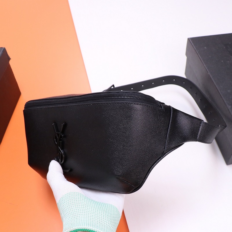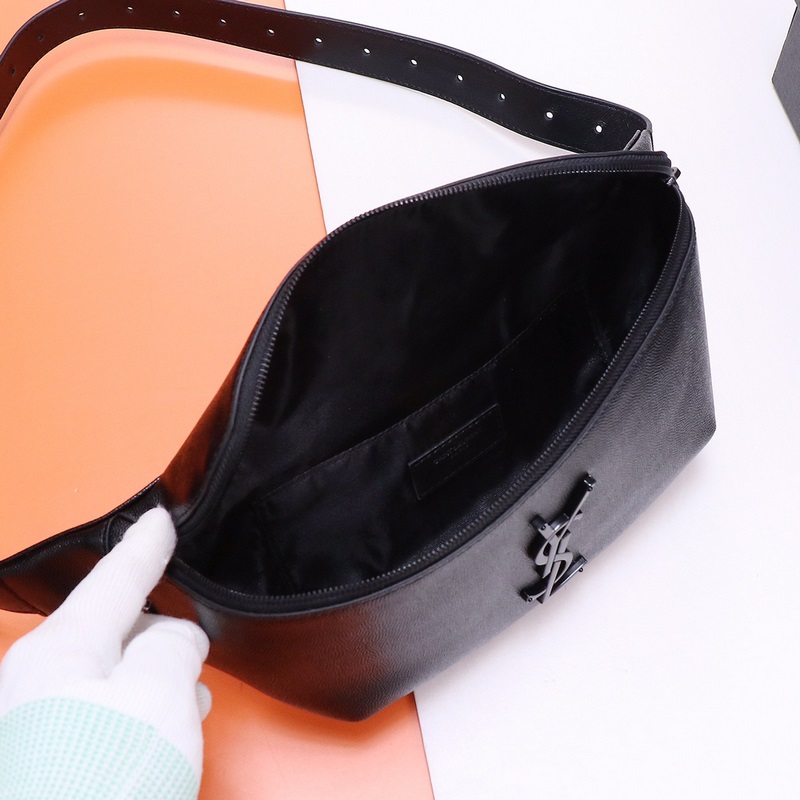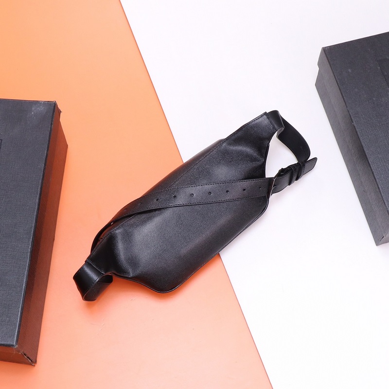 CLASSIC black genuine leather waist bag&chest bag with classic iconic logo, 100% top-grade lambskin, 3 card slots inside the bag, a zipper pocket on the back of the bag, super practical, a must-have for going out, unisex, couples can carry one bag like this together, it feels very heartwarming