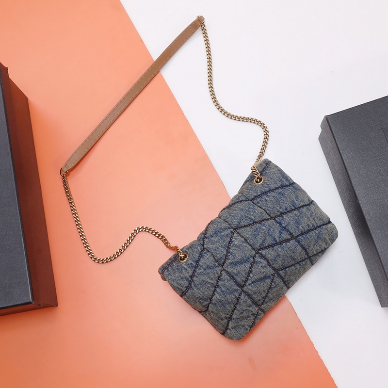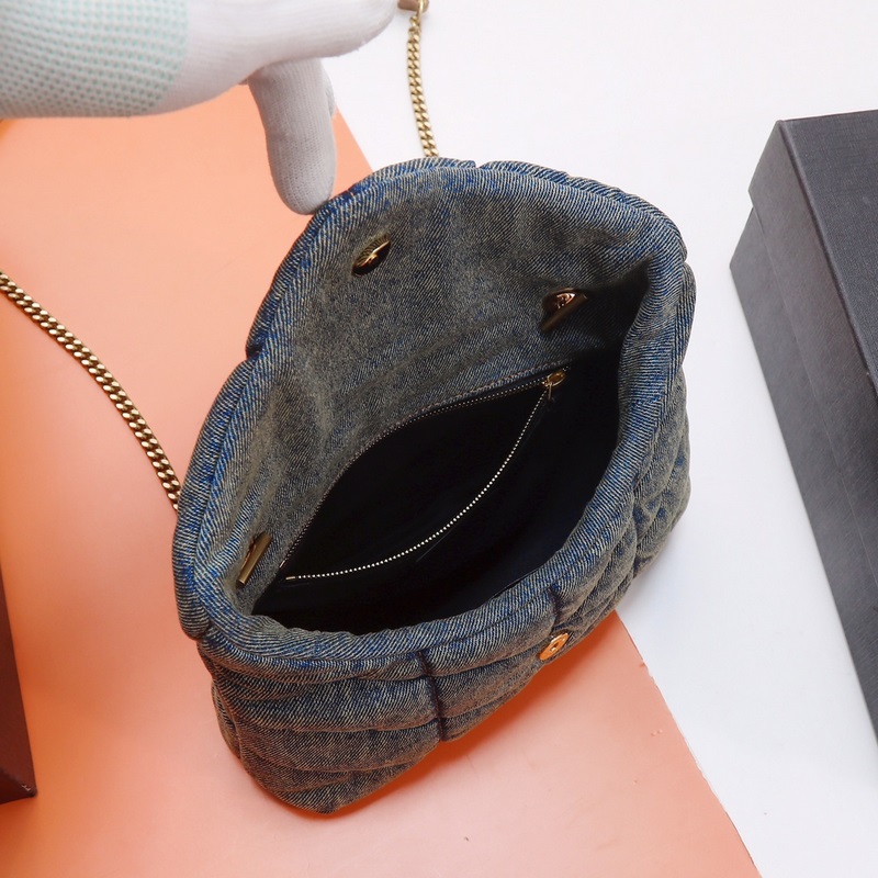 Exclusive real-life background. The original Loulou puffer is on sale. Especially this series of denim bags is very good-looking. It looks good no matter how you match it. It is very practical. The washed denim with a retro style is very malleable. It looks good no matter how you match it. Model: 620333 Denim size: 23*15.5*8.5cm