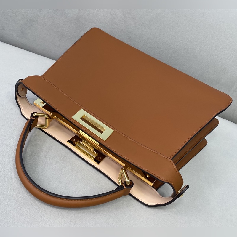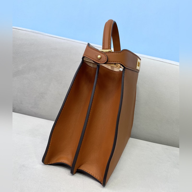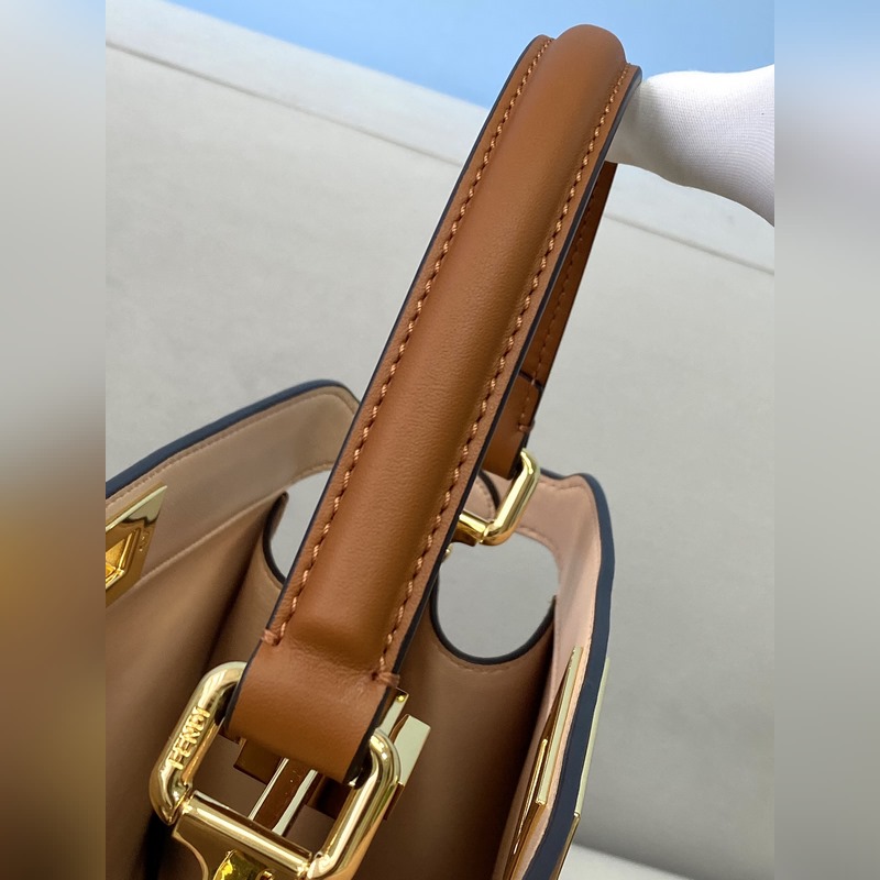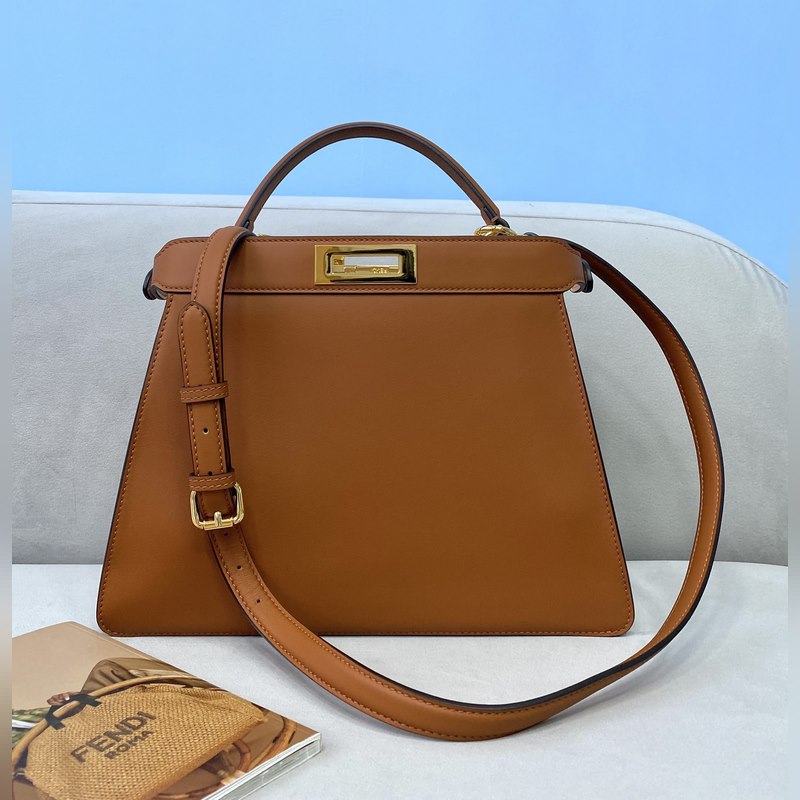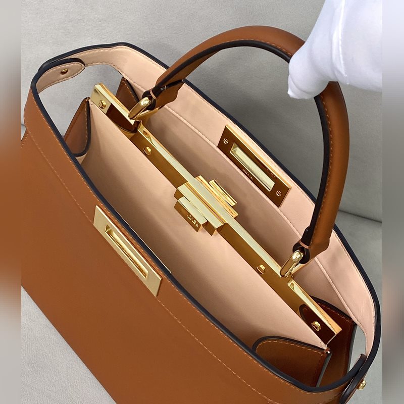 The “smiley” opening arc and color-blocked cowhide inner pocket, all kinds of details interpret the attitude of “FENDI” and explore the new mystery of female charm size 33×12×25 158F+full set of packaging invoice Model No. 835 Caramel No.: WZ96181400