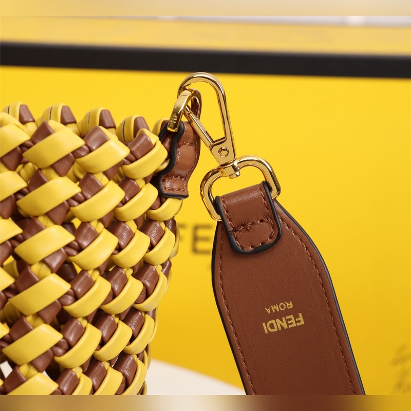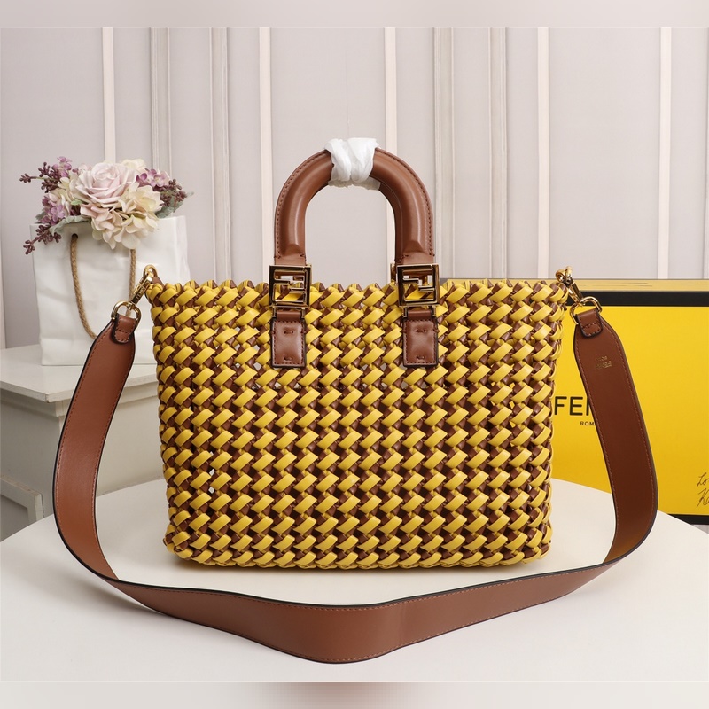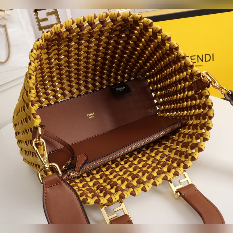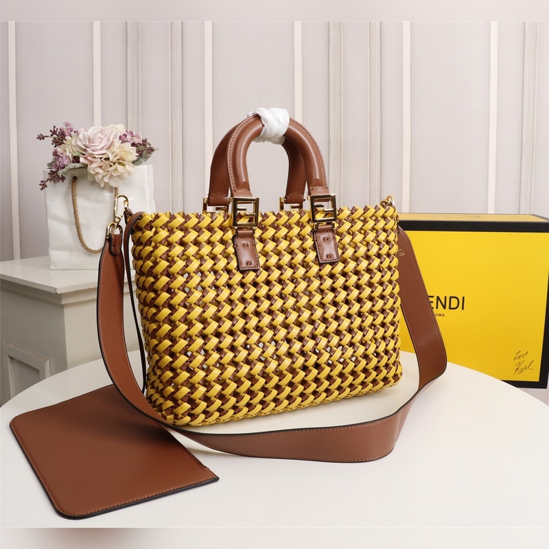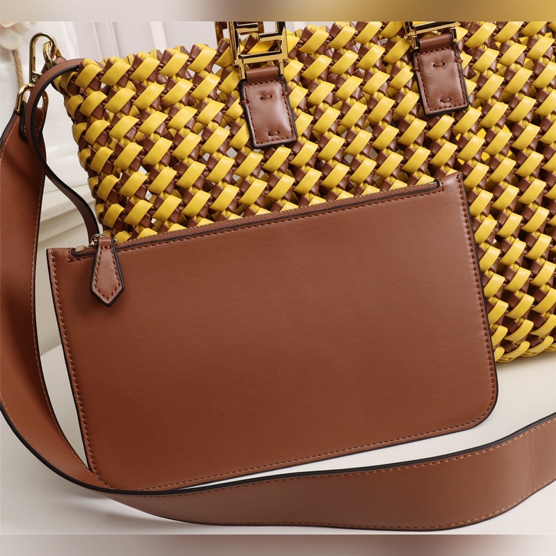 Equipped with a magnetic buckle and double handles, with an embroidered shoulder strap, can be worn cross-body or by hand, plus a small handbag, versatile and practical casual style, gold-finished FF details and metal parts Size: 31x21x11cm Number: PZ9618790